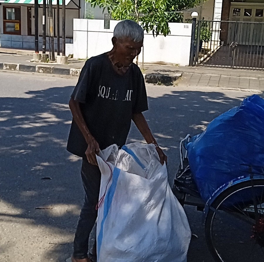 Becak yang digunakan merupakan miliknya sendiri dan sudah dipakai sekitar dua tahun terakhir karena ia tidak lagi kuat memikul barang berat. Dengan becak itu, barang-barang bekas yang ditemukan bisa langsung ia kumpulkan tanpa harus diangkat jauh.