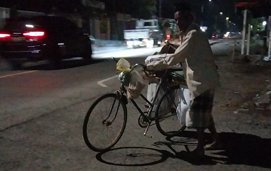 Biasanya kakek berjualan dengan sepeda tuanya. Namun sepedanya tak bisa dikayuh, kakinya sering sakit, kakek hanya bisa menuntut sepeda nya perlahan. Tak tiap hari uang didapat, seringkali kakek minum air putih untuk menahan lapar sampai kakek dapat rezeki dihari itu.