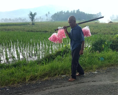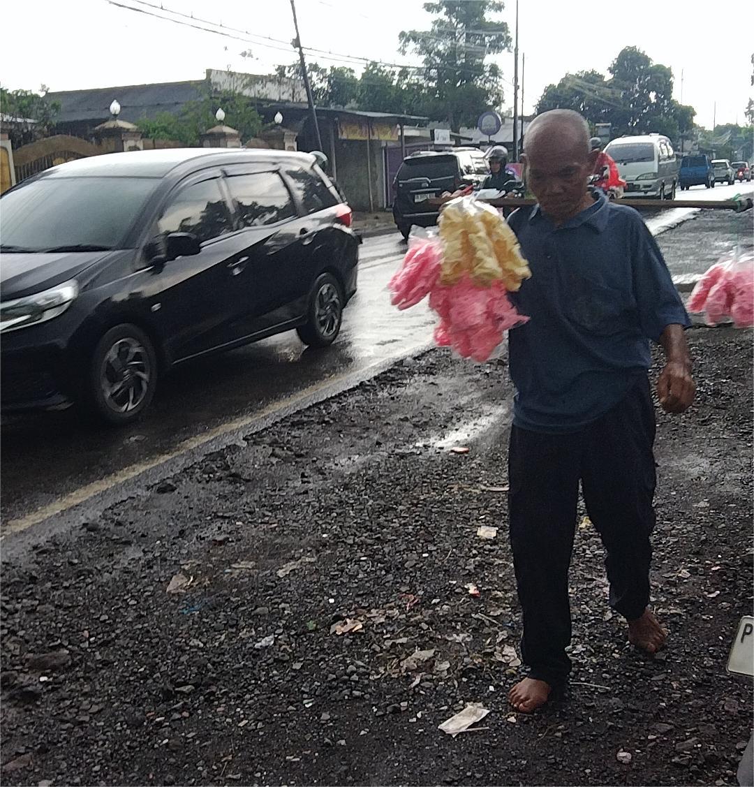 Tubuhnya melemah karena stroke dan asam urat tinggi. Untuk berjalan saja ia hampir terjatuh. Tapi setiap pagi jam 7, ia memikul kerupuk dan berjalan sejauh 5 km hingga sore.