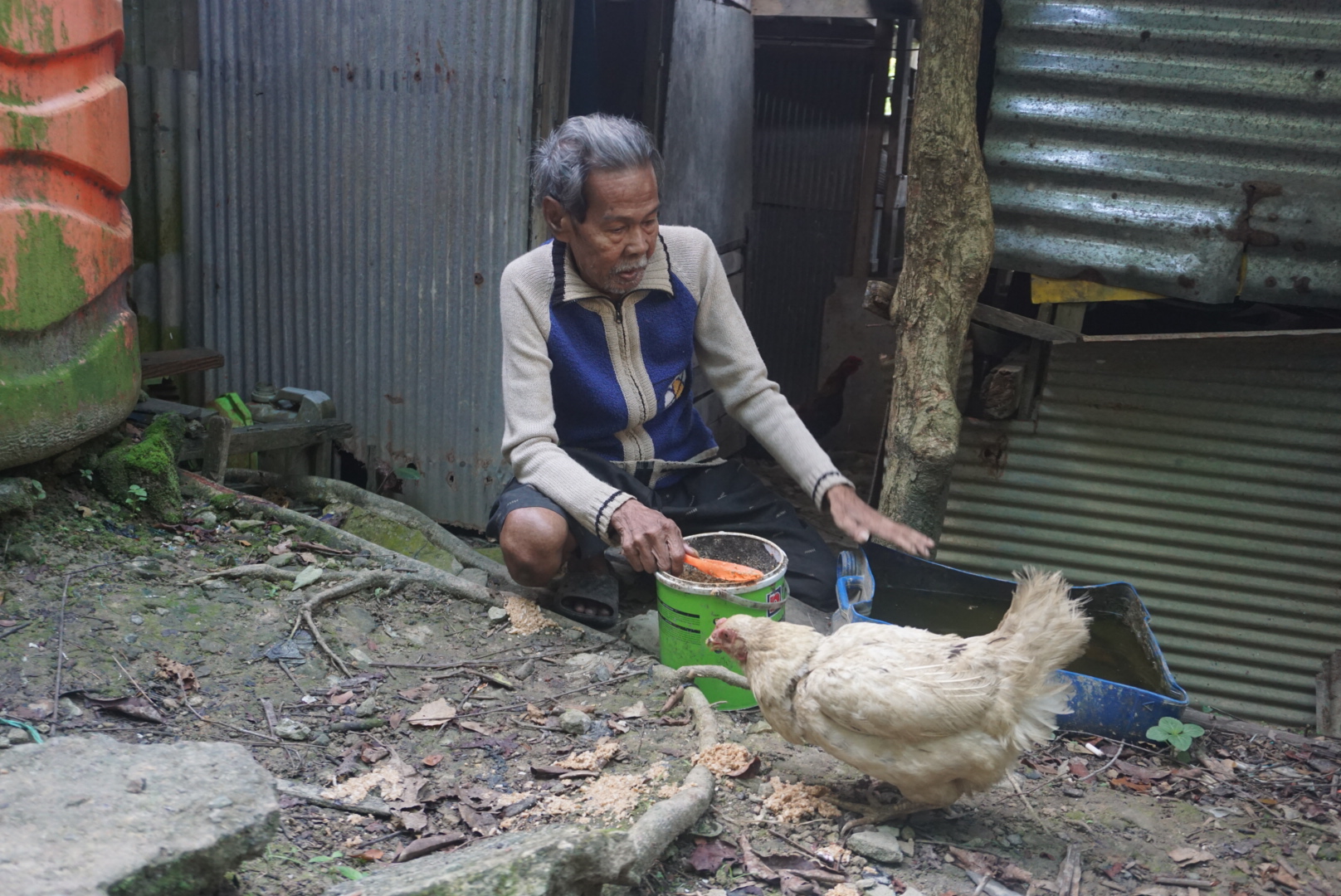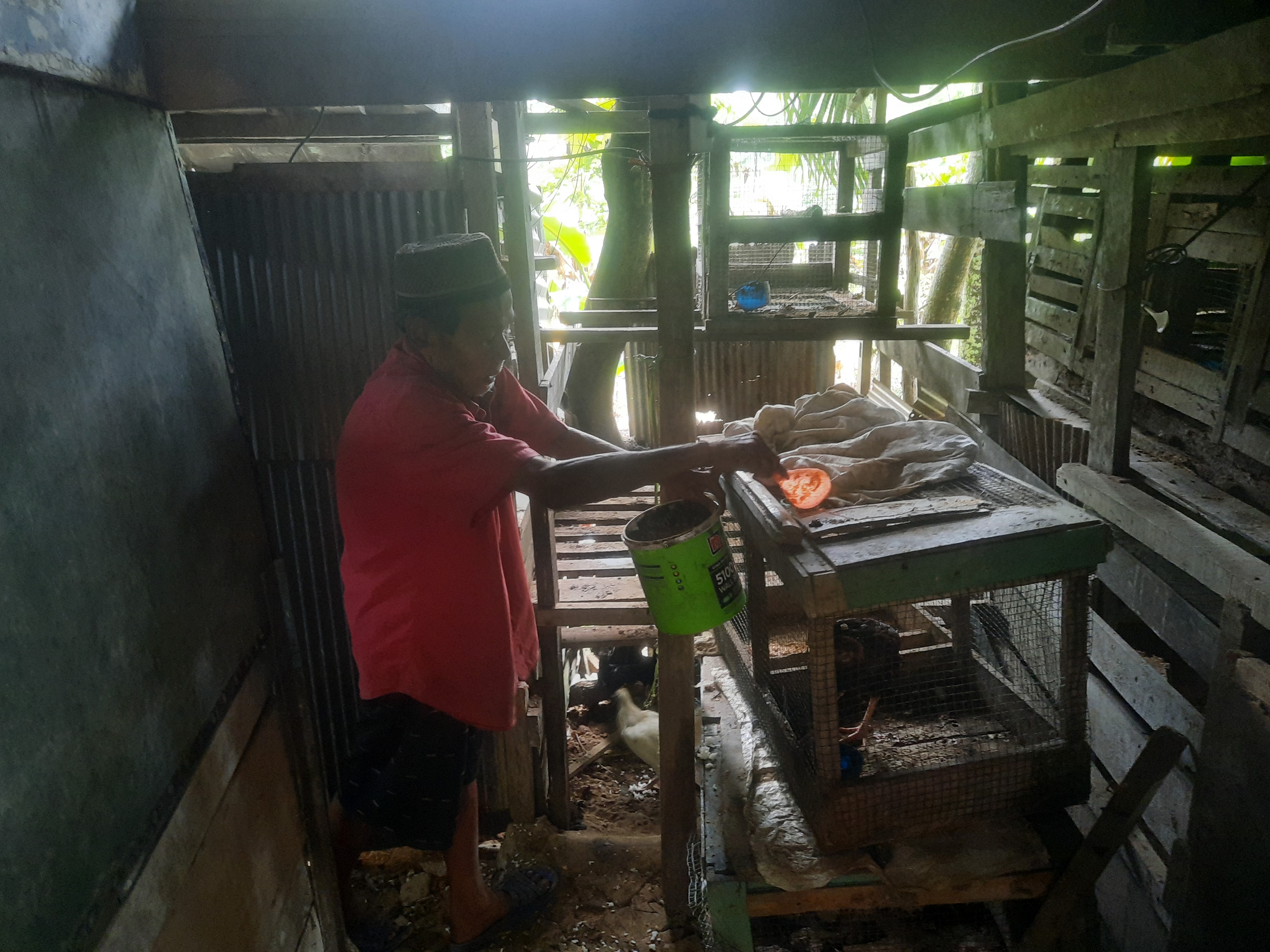 Saat ini ayam yang dipelihara kakek tinggal 10 biji karena pada mati akibat penyakit.