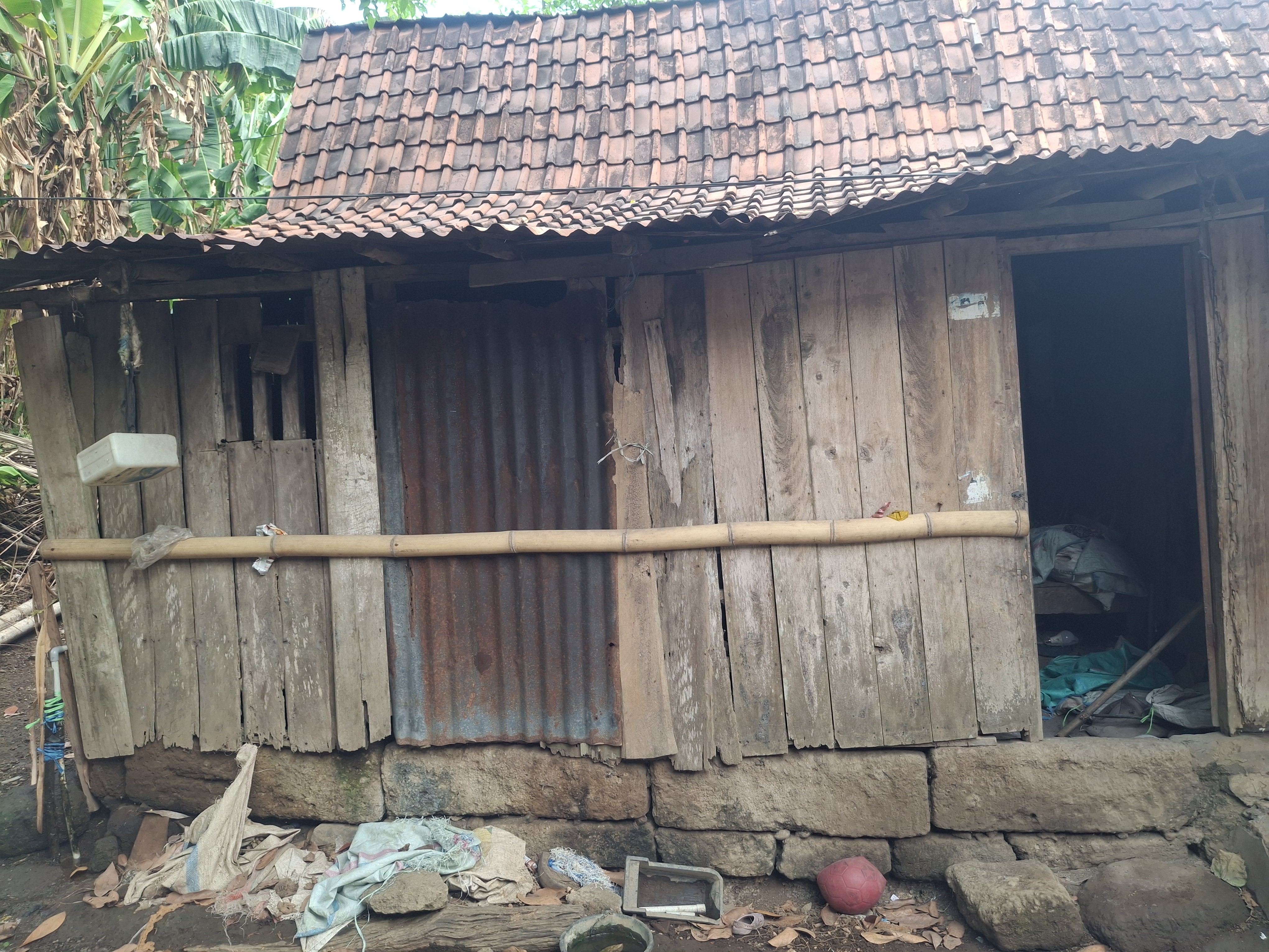 Kakek Markacung selama ini tinggal dirumah yang kurang layak dan sering bocor, apalagi saat hujan turun, kakek setiap malam harus tidur dengan kedinginan.