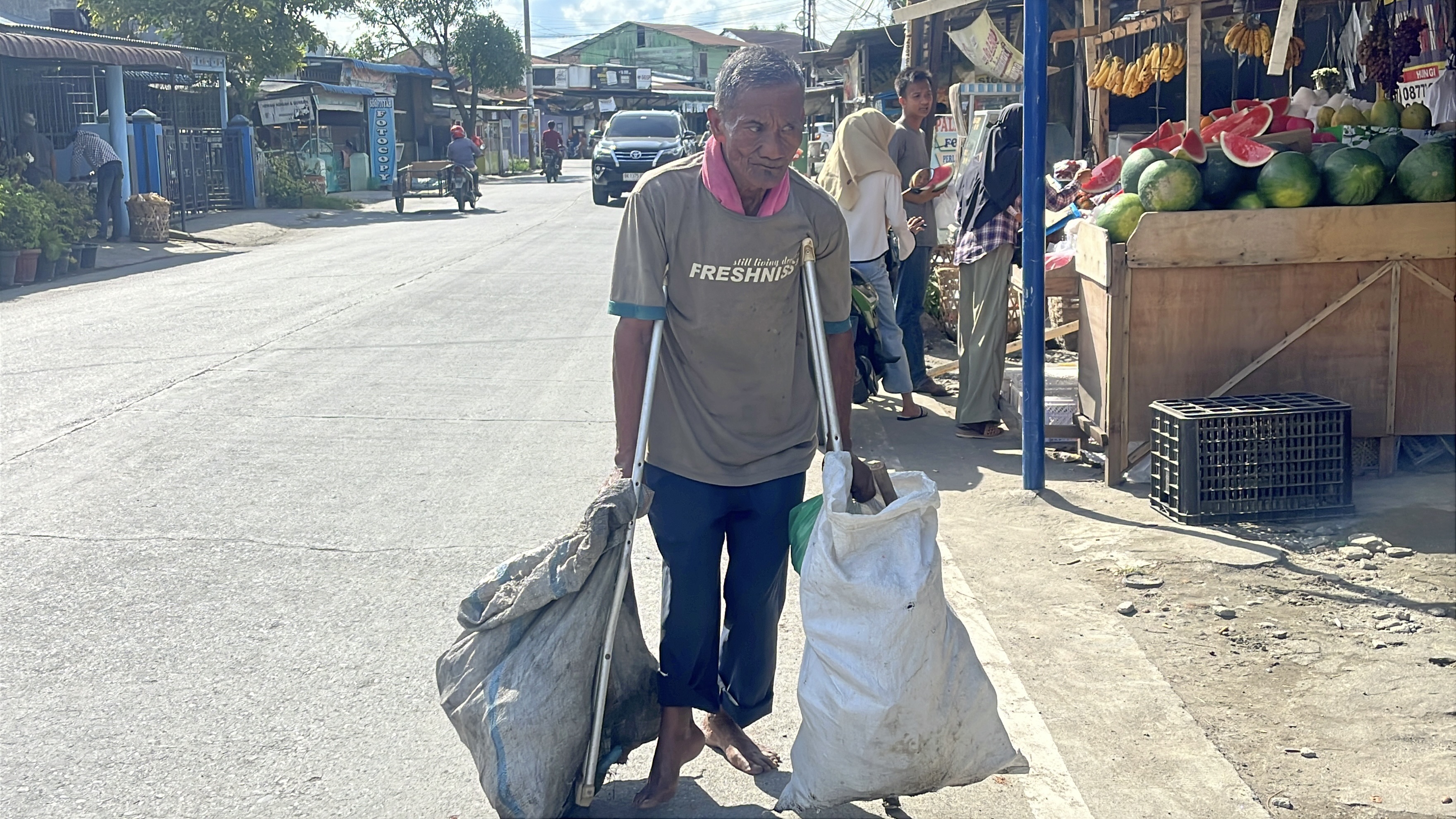 Ditengah sakitnya, ia tetap memaksakan diri berjalan sejauh 5 KM setiap hari hanya untuk mencari rongsokan.