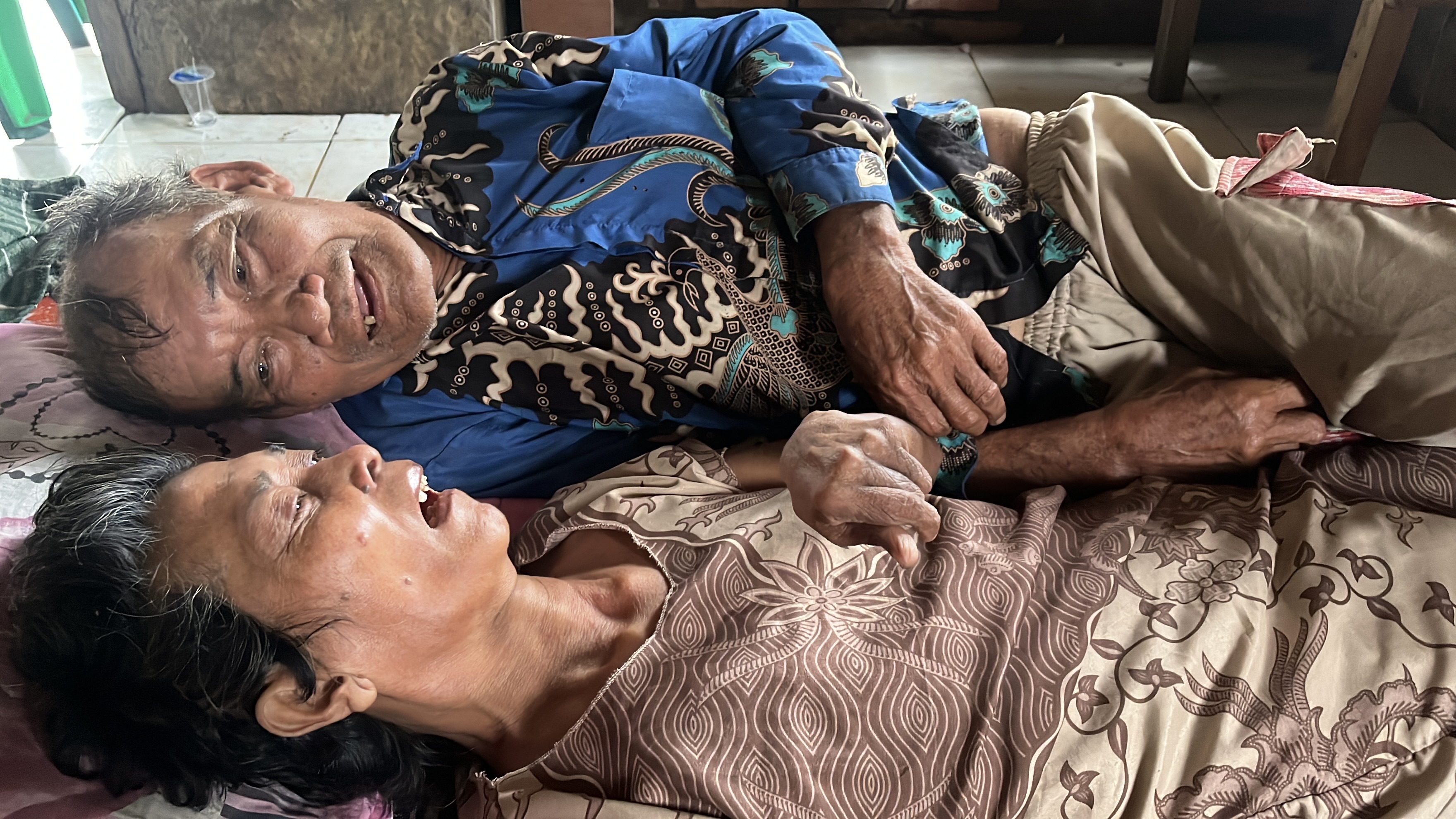 Istrinya, Nenek Kamisa mengidap stroke, hanya bisa terbaring lemah di tempat tidur. Kondisi yang semakin memburuk membuat kakek takut akan kehilangan istri tercintanya.