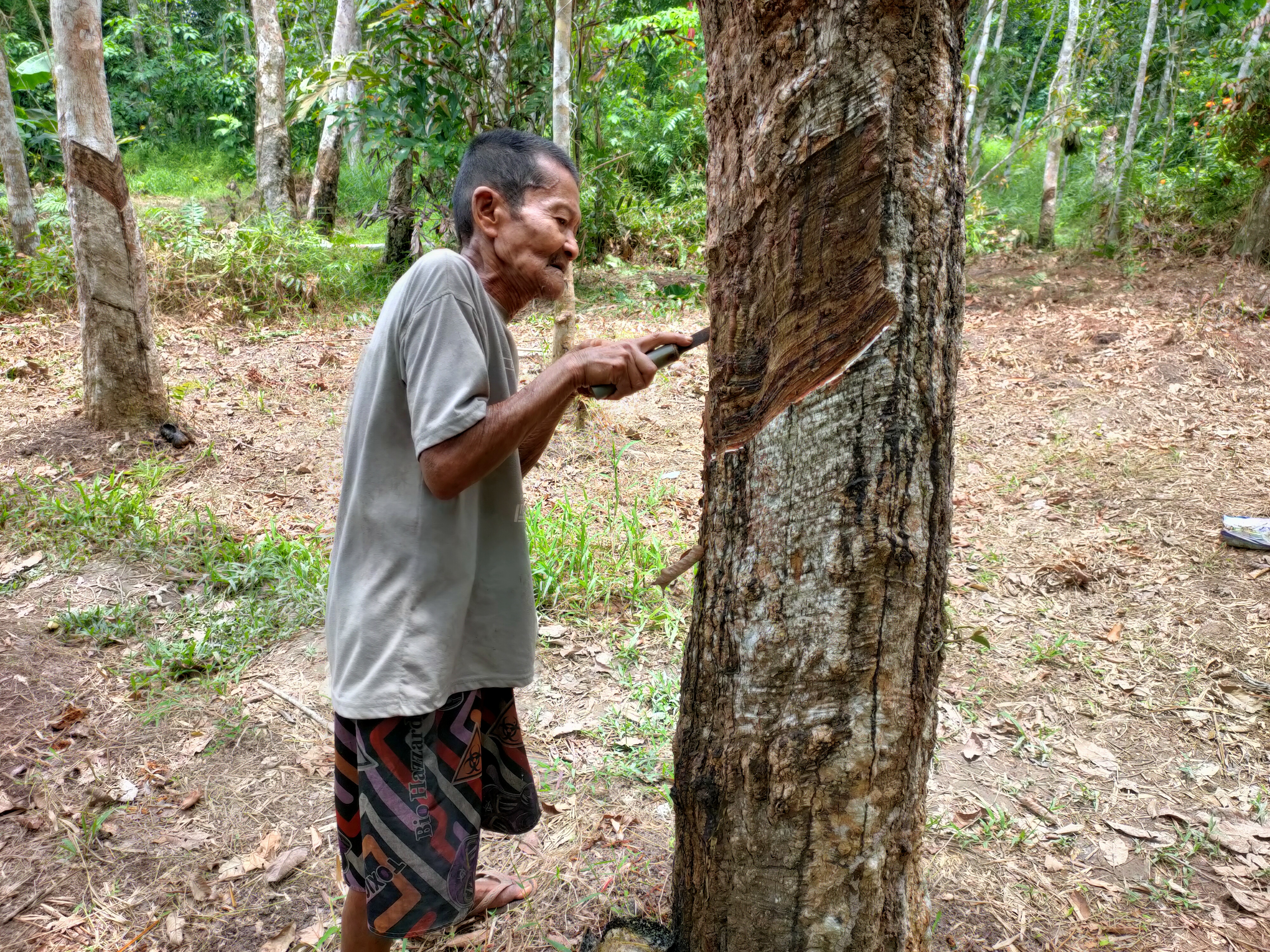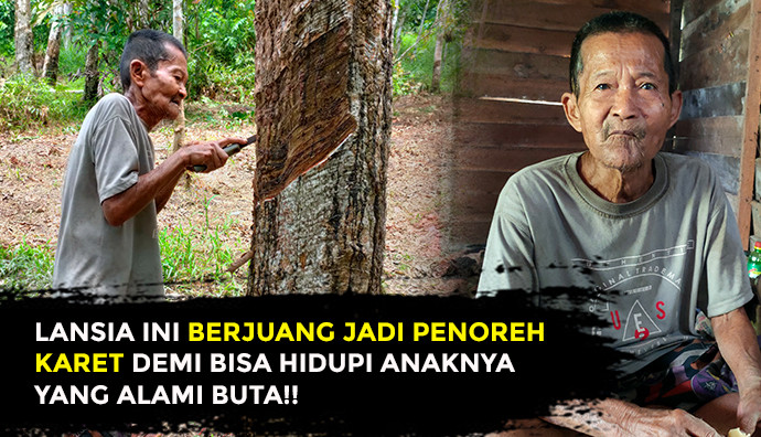 Kakek Matseh (71) berjuang demi sesuap nasi dengan bekerja menjadi buruh noreh karet tapi upah Kakek hanya 5 ribu