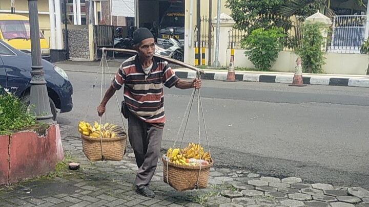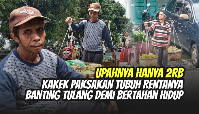 Ini Kakek Mulyono (70) di usia senjanya ia masih tetap harus mencari nafkah dengan keliling menawarkan pisang untuk dijual.