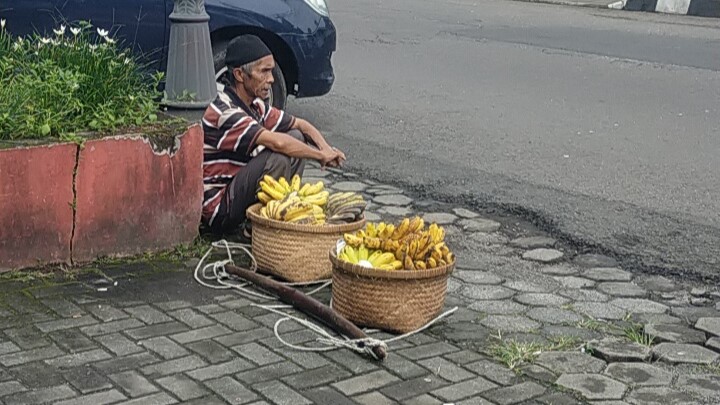 Sudah puluhan tahun kakek Mulyono berjualan pisang. Upahnya sering kali tak cukup, makan pun sering kali makan nasi tanpa lauk.