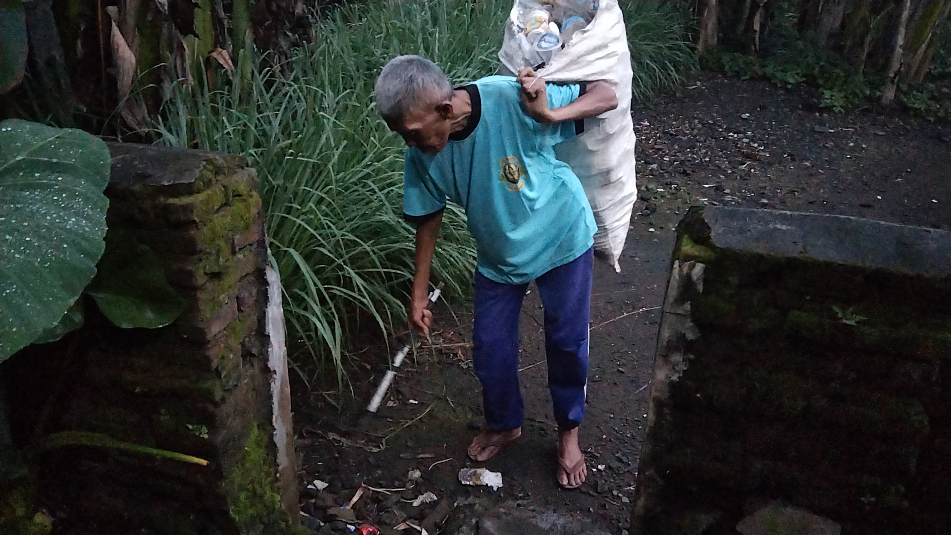 Saat terasa lapar, kakek biasanya hanya minum air untuk menahan sampai kakek dapat barang bekas dan dijual untuk beli makan.😪