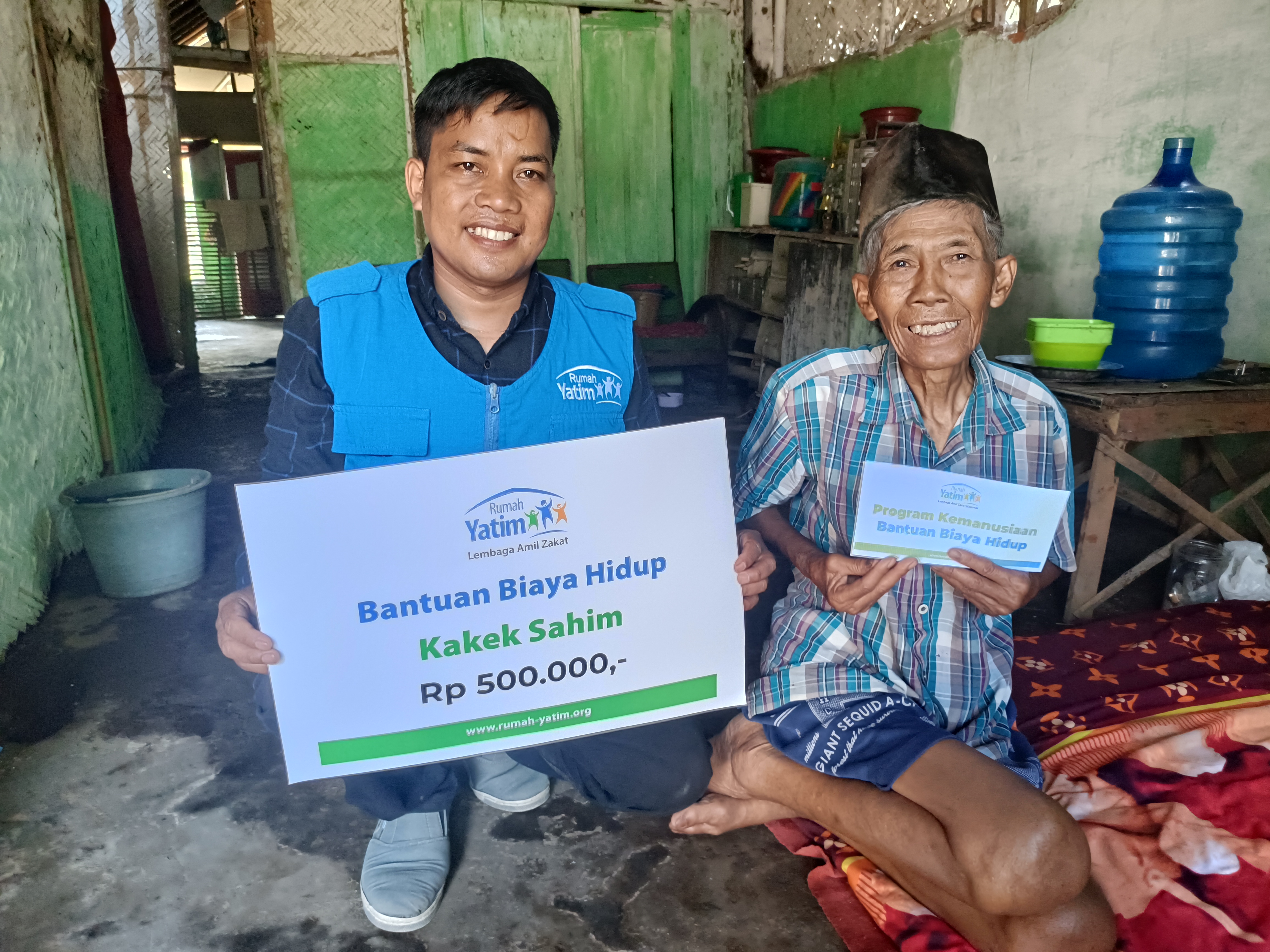 Kakek Sahim mengucapkan “Terimakasih banyak para #pejuangkebaikan yang telah membantu dan membersamai Kakek Sahim hingga saat ini. Kakak adalah pahlawan bagi Kakek Sahim dalam menjalani hari-harinya. Semoga apa yang telah diberikan menjadi penglapang untuk rejekinya, pembersih untuk hartanya serta Allah SWT limpahkan berjuta kebaikan serta keberkahan untuk Kakak dan keluarga.. Tak lupa senantiasa diberikan kesehatan dan kemudahan dalam segala urusannya. Aamiin.”