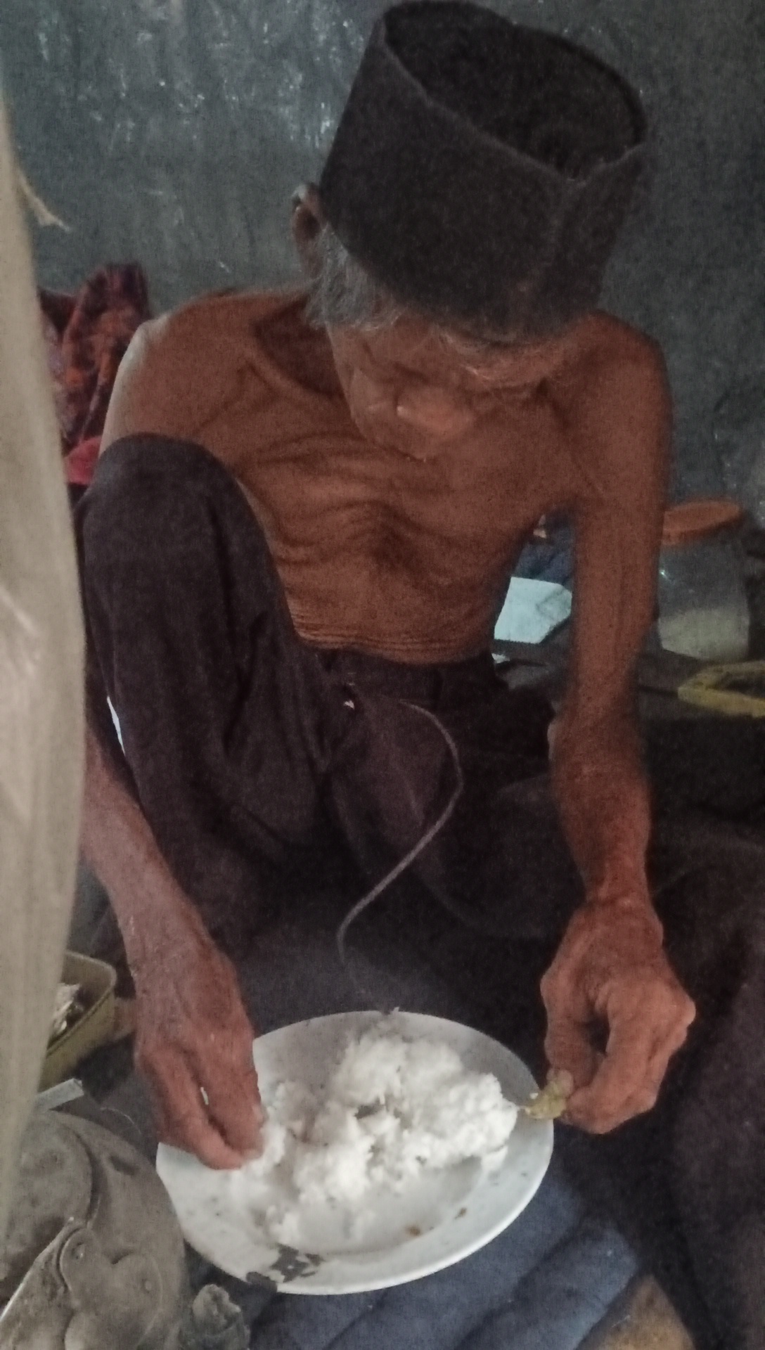 "Kakek jarang makan nasi nak, kalaupun ada paing hanya satu kali sehari. Itupun pake garam atau cabe rawit aja," lirihnya.