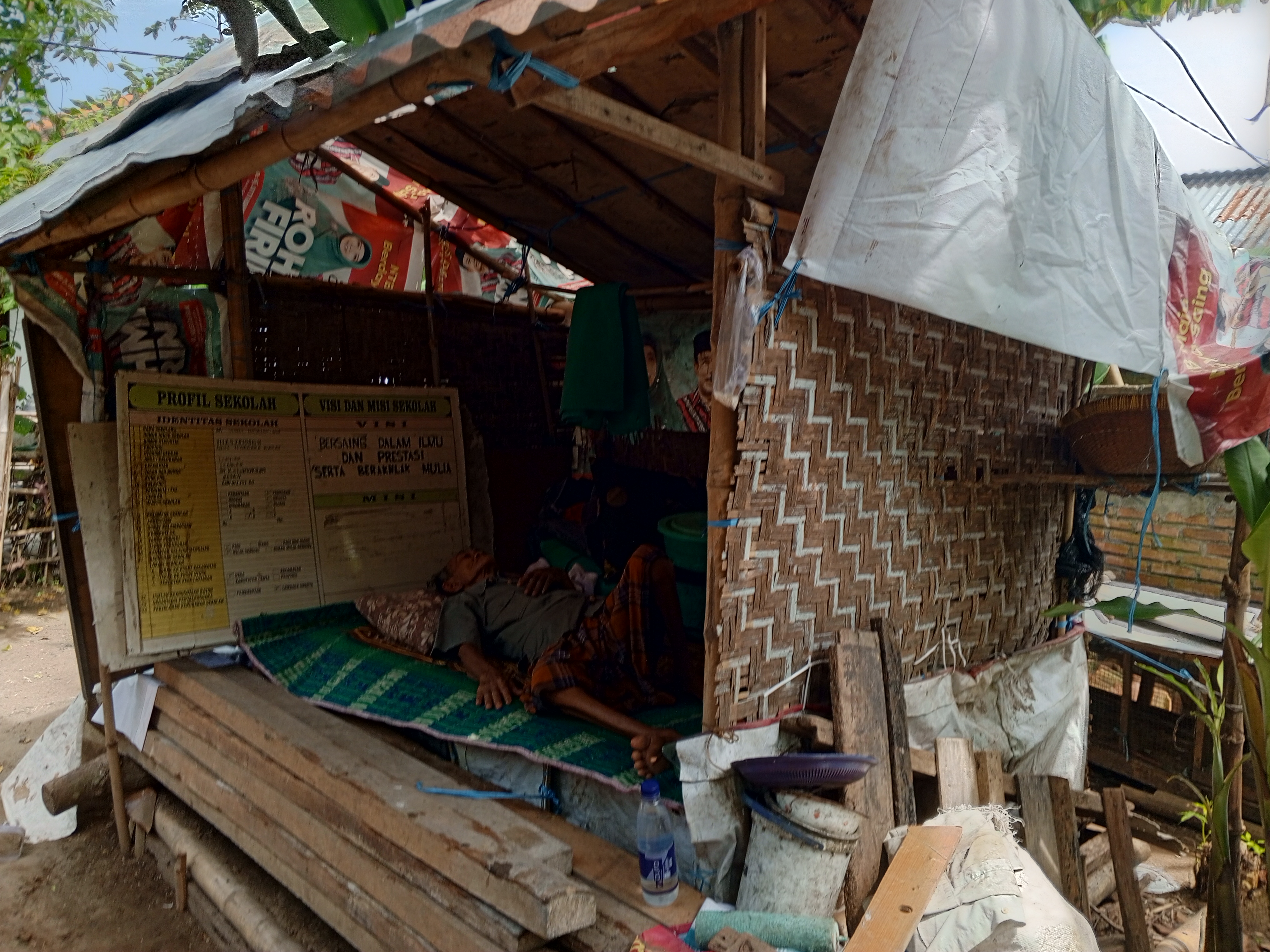 Ia tinggal di rumah kecil yang rusak parah, nyaris tak cukup untuk sekadar berbaring dengan nyaman.