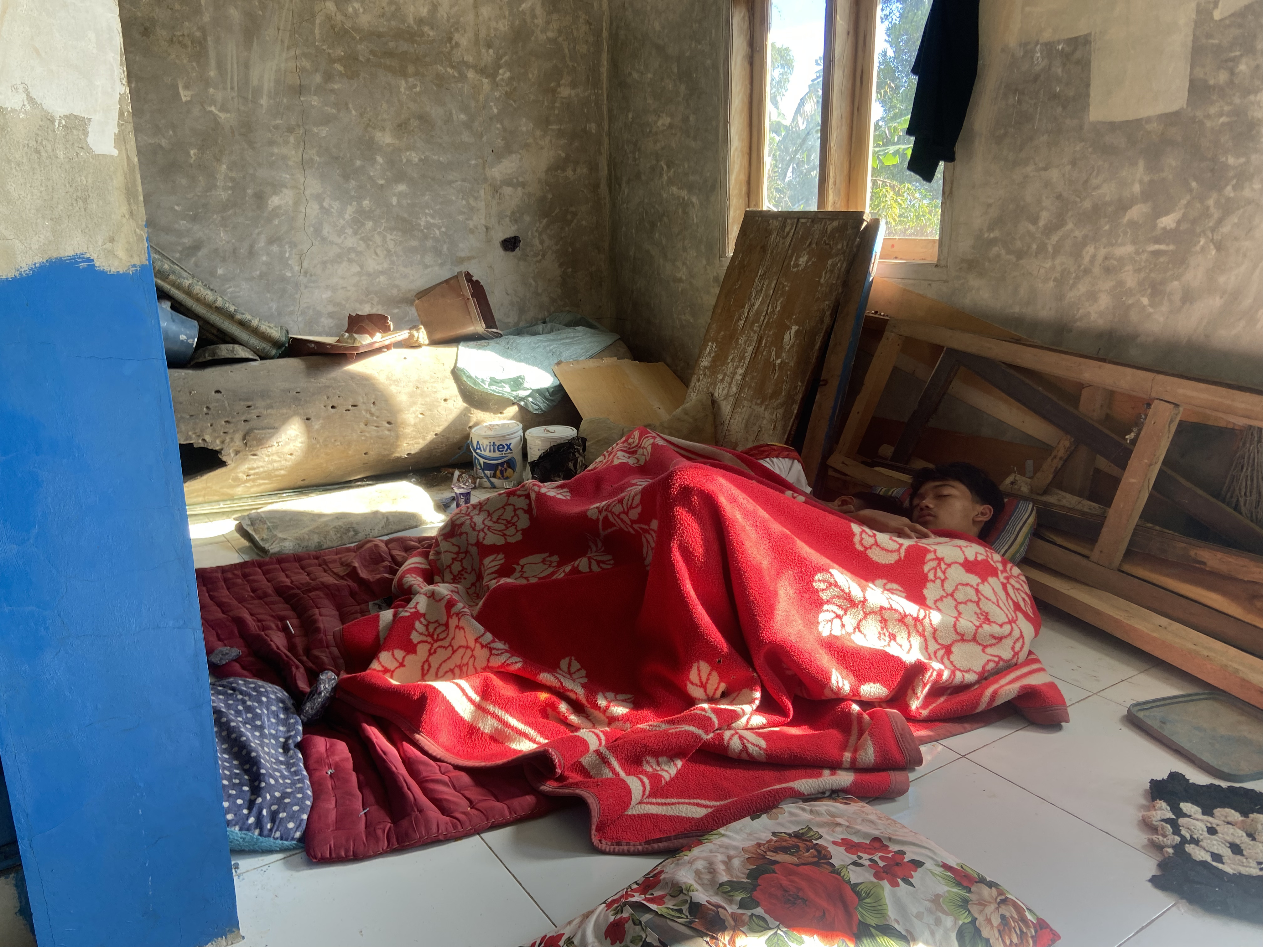 Kadang pun saat hujan turun atapnya bocor, sering kali tempat tidur mereka basah. Tapi mereka tetap sabar.