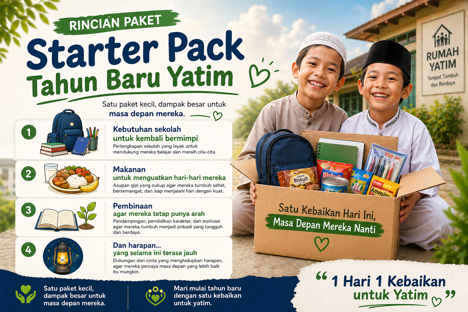Melalui program “Starter Pack Tahun Baru Yatim”, kamu tidak hanya memberi bantuan… tapi memulai hidup baru untuk mereka.