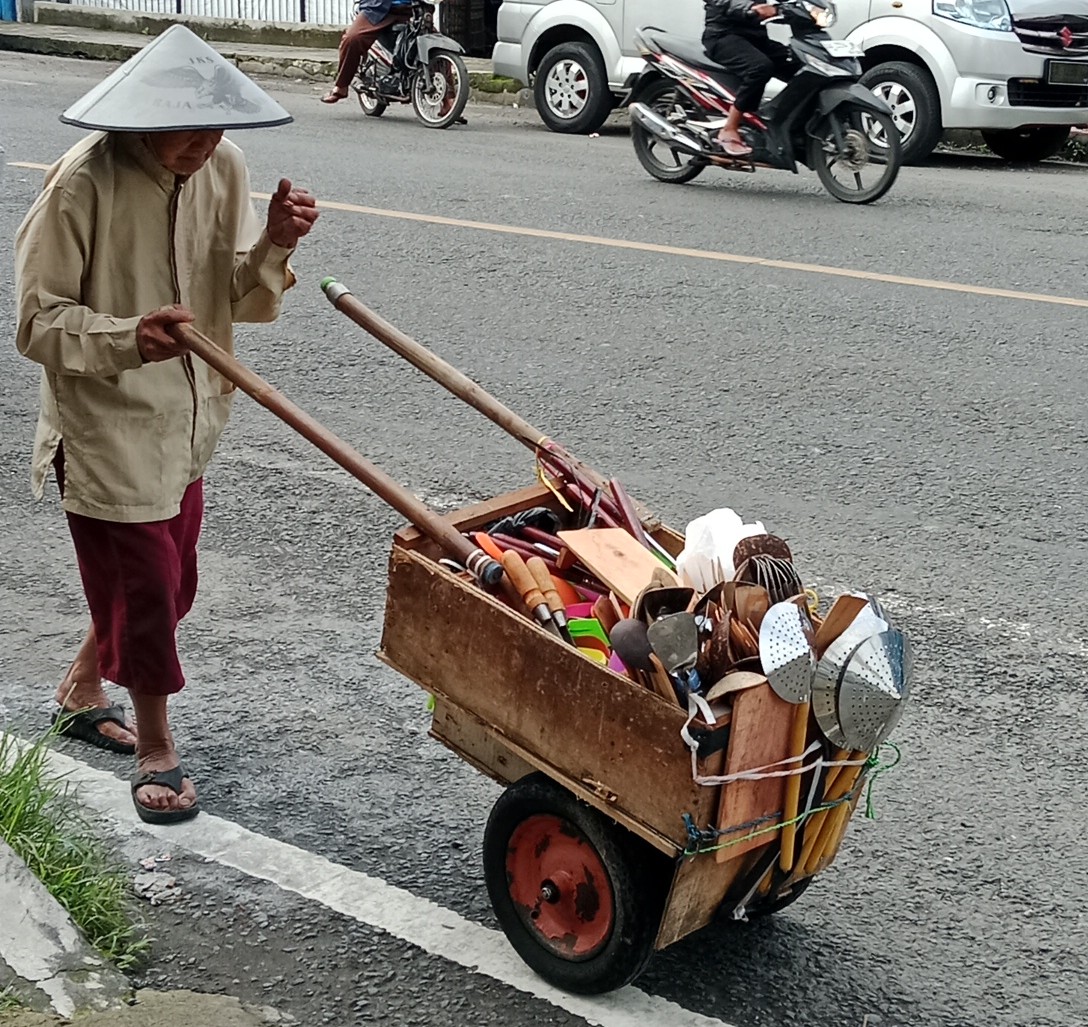 Selama 45 tahun, Mbah Yitno berjualan perabotan keliling dengan gerobak sederhananya. Setiap hari ia berjalan hingga 4 km, dari pagi sampai sore, meski tubuhnya sudah lemah dan pendengarannya menurun.