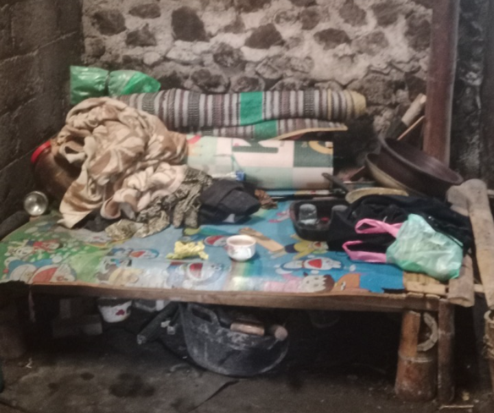 Mereka hidup berdua di gubuk beralas tanah, atap bocor, tanpa WC, dan sering hanya makan mi instan berdua.