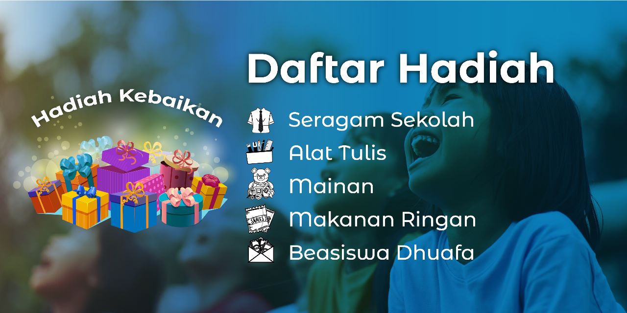 Hadiah Kebaikan adalah kado untuk anak yatim yang berisi beragam kebutuhan anak yatim, mulai dari pakaian, alat tulis, makanan, mainan, dan kebutuhan lainnya.