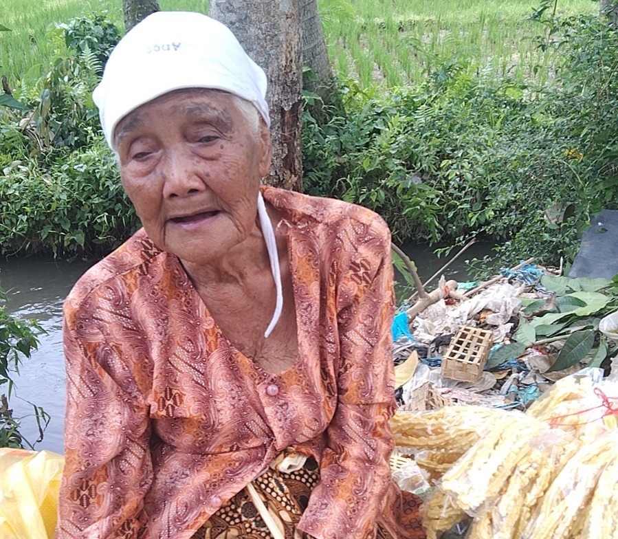 Tubuhnya yang sudah membungkuk, nenek Buniyem berjuang menawarkan kerupuk. Dari satu ikat kerupuk, ia hanya dapat upah Rp2.000 rupiah– dan itu pun jarang laku. Seharian nenek dapat Rp20.000 itupun kalau laku. Nenek hidup seorang diri di kontrakan.