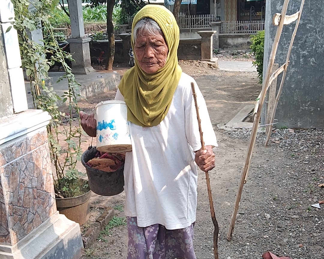 Nenek Buriya (98) berjualan sayuran keliling agar ia dan adiknya bisa makan. Adik nenek mengidap lumpuh, tidak bisa berjalan sama sekali.