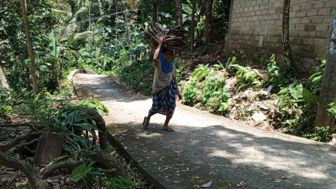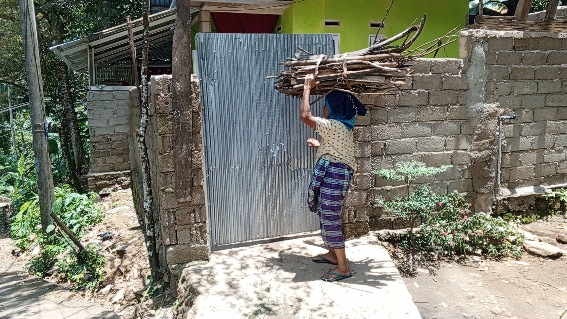 Ia mencari kayu bakar di hutan kecil dekat rumahnya, mengikatnya, lalu berjalan jauh menjual dari rumah ke rumah. “Kayu bakar, buk..dua puluh ribu saja seikat”ujar nenek Jumilah.