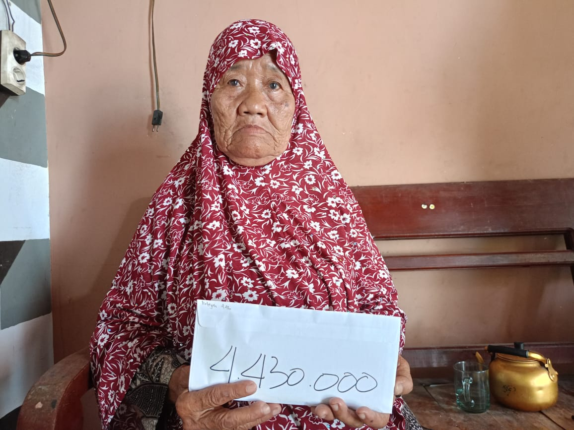 Bantuan yang diberikan adalah bantuan biaya hidup berupa sembako seperti minyak, beras, terigu dan lain nya, tak hanya itu, tim kami juga memberikan bantuan berupa uang tunai sebesar Rp.4.430.000,-guna membantu kebutuhan sehari hari Nenek Kotijah.