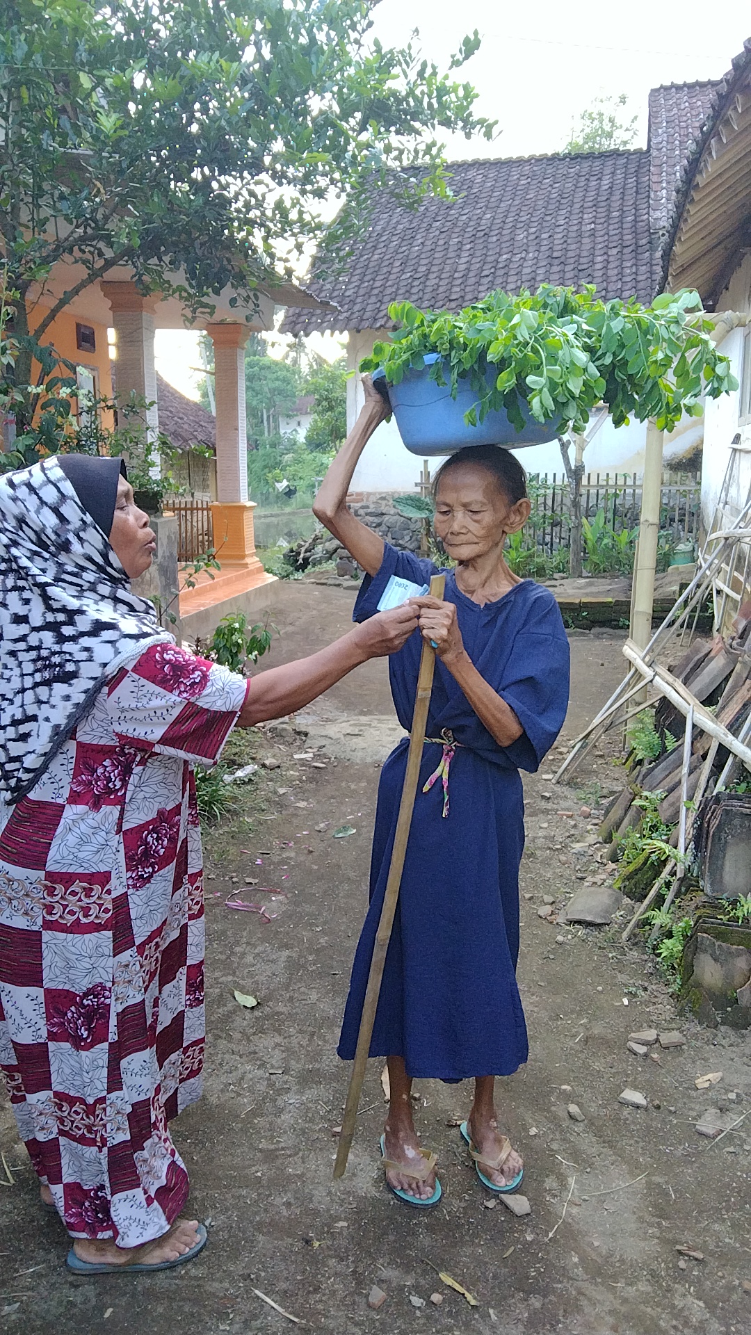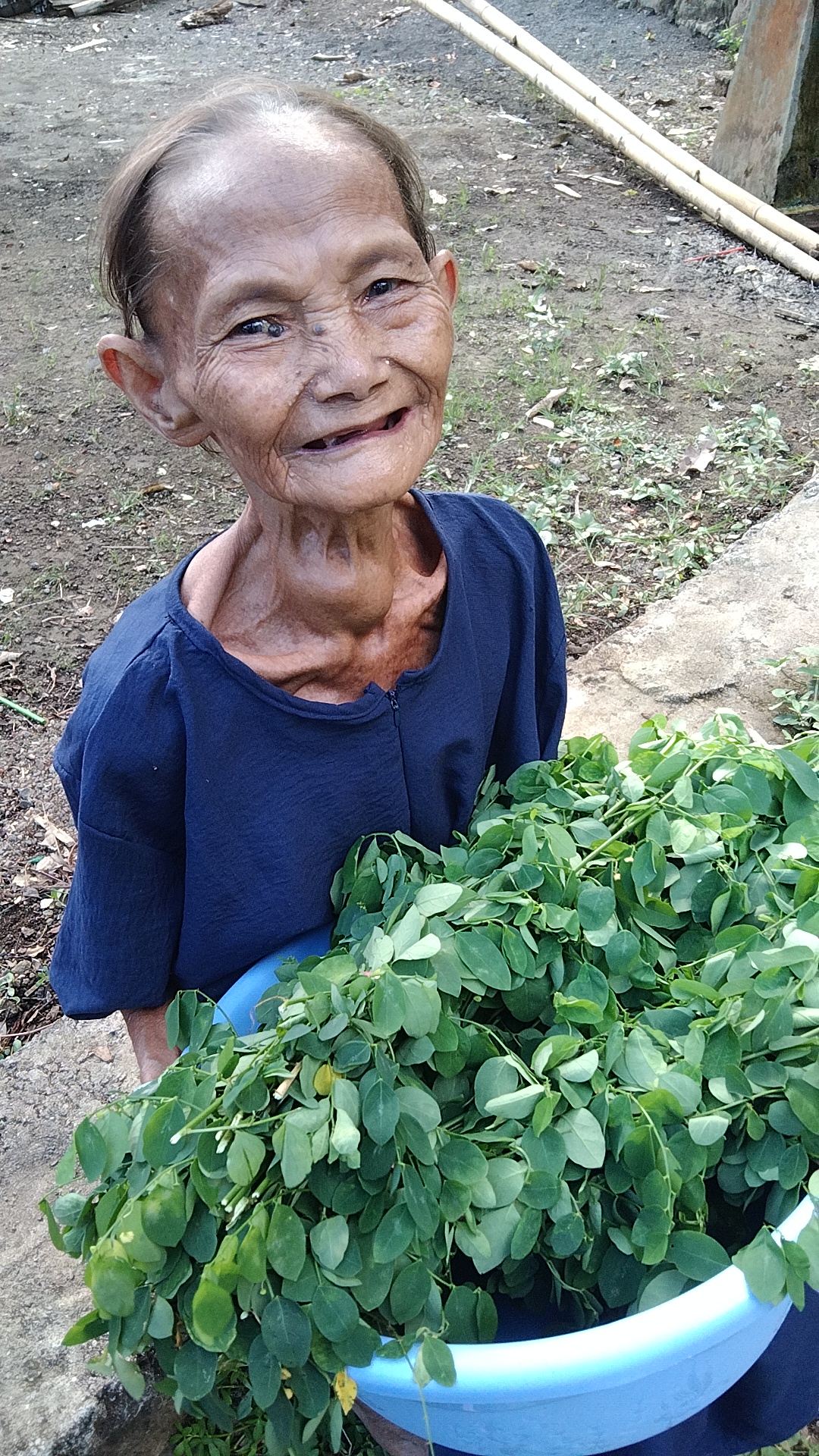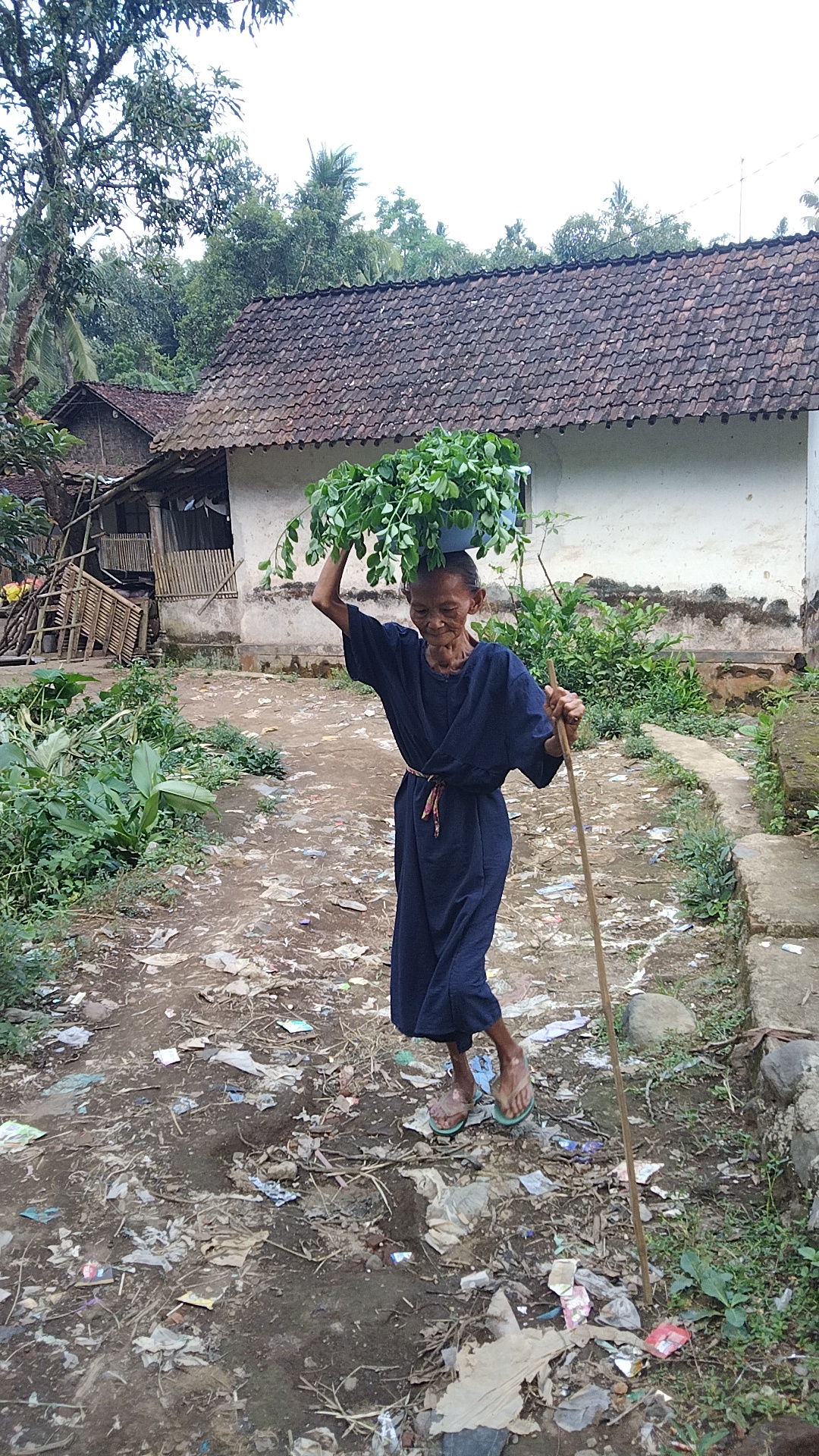 Di usianya yang renta, dengan tubuh gemetar dan bertopang tongkat, ia tetap berkeliling dari desa ke desa sejak pukul 6 pagi hingga siang hari. Di pundaknya, ia membawa sayur milik orang lain bukan miliknya sendiri.