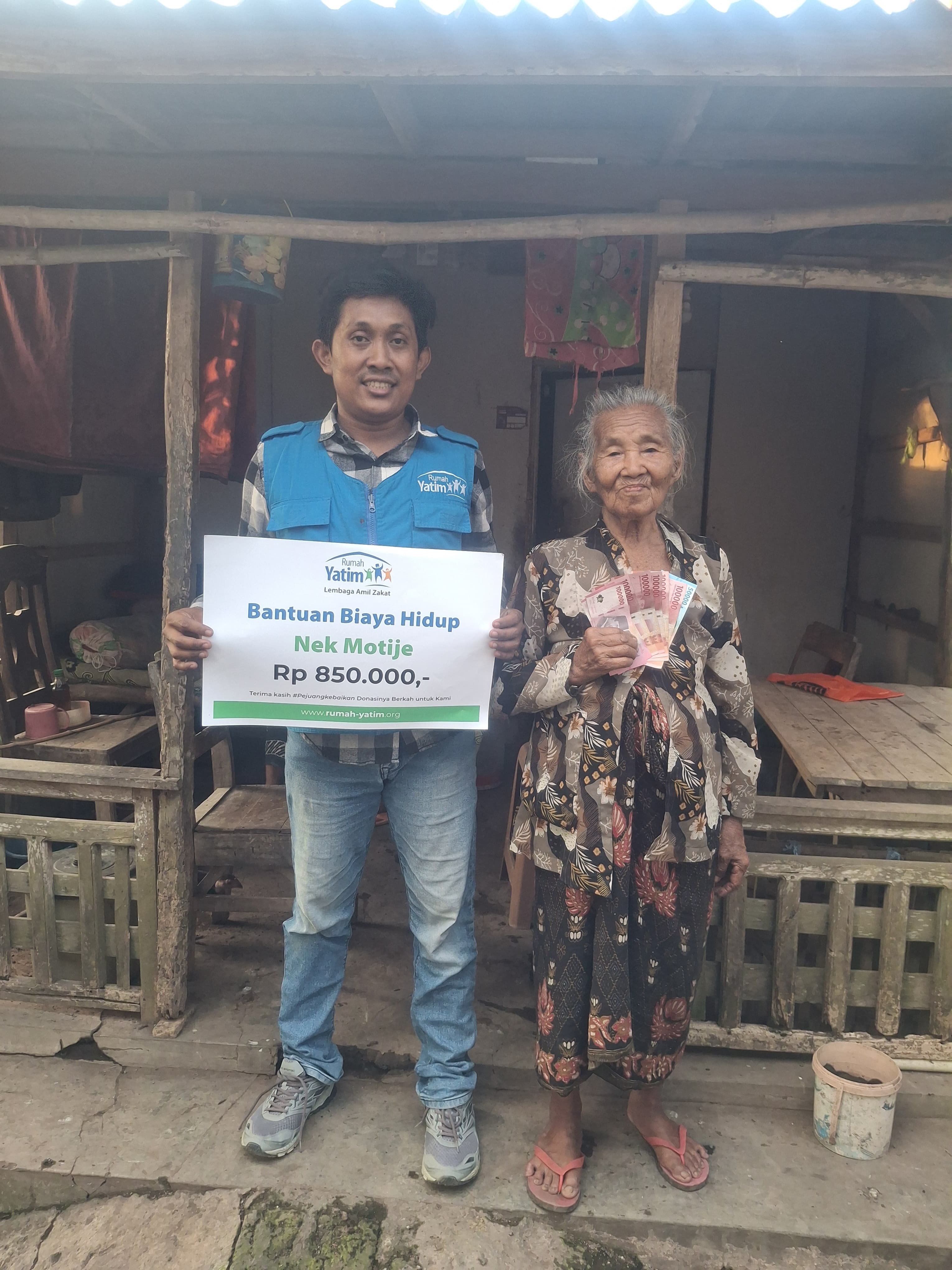 Alhamdulillah dana yang di titipkan melalui https://donasionline.id/nekmotijery telah kami salurkan kepada Nenek Motije. Alhamdulillah untuk penyaluran Ke 1 ini kami datang dengan memberi bantuan berupa Uang tunai.