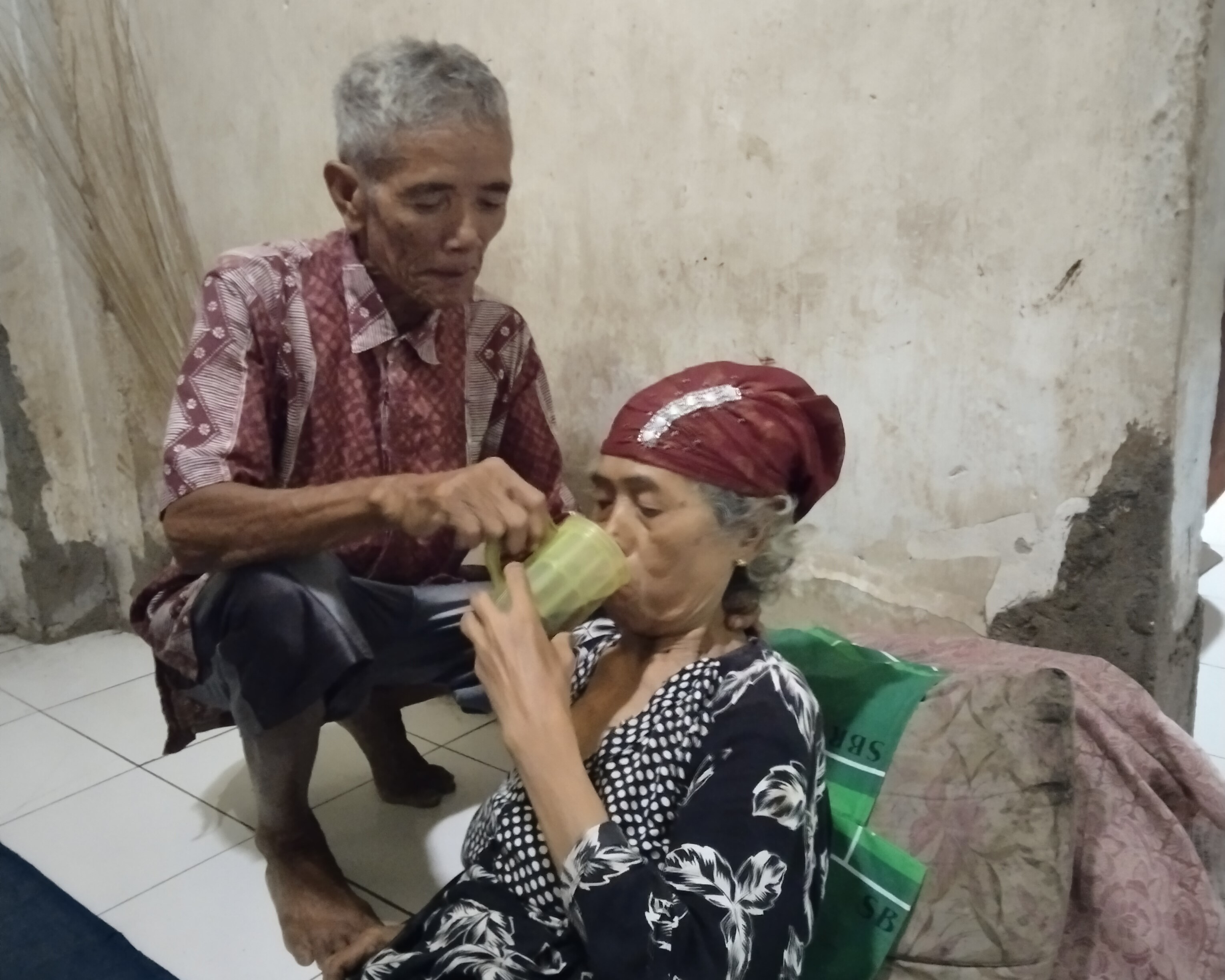 Saat tim mengunjungi rumah nenek, ia sudah beberapa hari ini hanya berbaring di tempat tidur karena sakit, kakek lah yang merawat nenek.