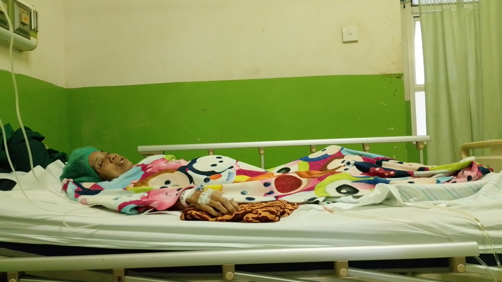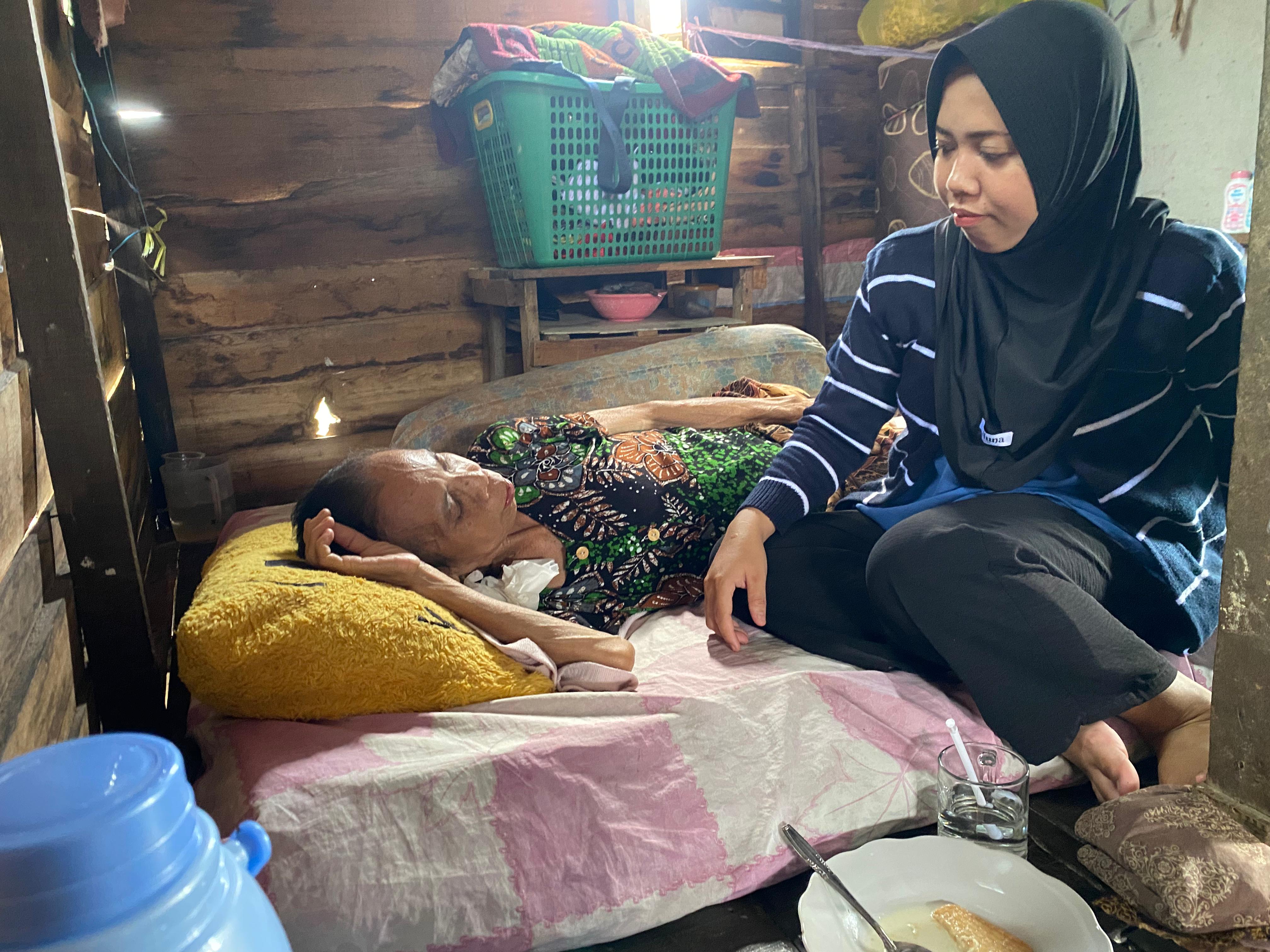 Nenek Norpah hanya bisa terbaring dan duduk ditempat tidur dirawat anak bungsunya. Sang anak hanyalah ibu rumah tangga yang memiliki penghasilan tambahan dari menjahit.