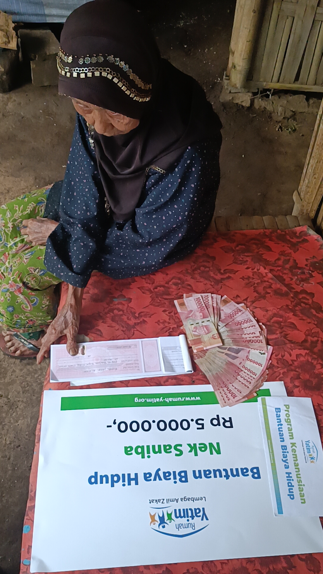 Sedikit bantuan dari #PejuangKebaikan semua sangat bermanfaat bagi nenek Saniba bertahan hidup. Kalian semua bisa membantu nenek melalui :