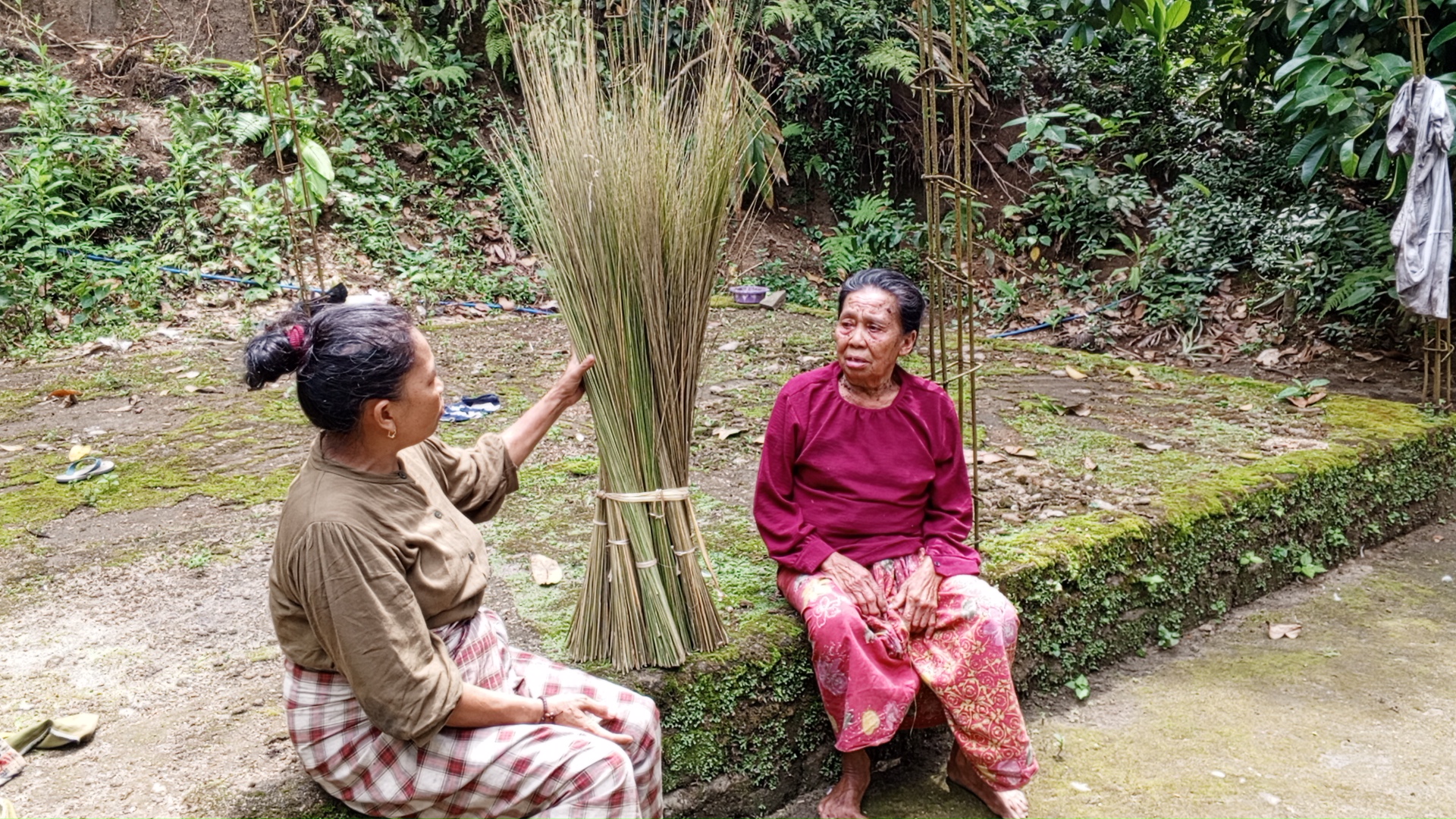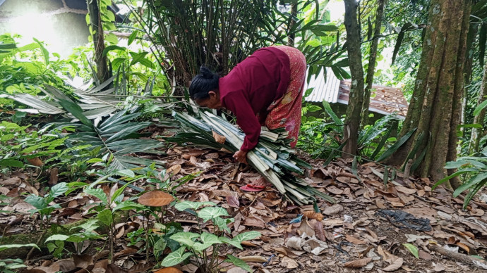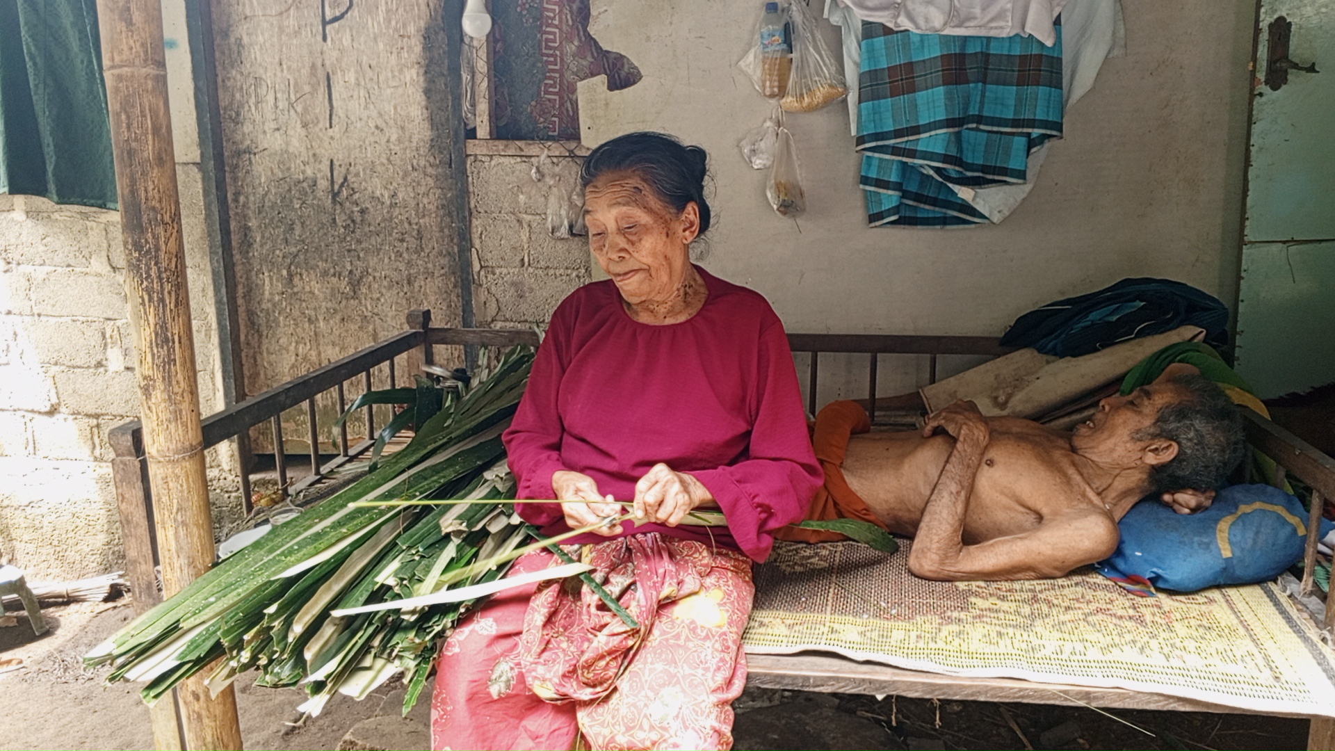 Setiap hari, Nenek Suardi berjalan hampir 2 km menyusuri kebun untuk mencari daun kelapa dan membuat sapu lidi. Satu sapu hanya dihargai Rp2.000.