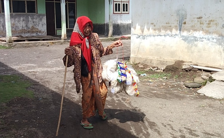 Setiap hari ia membawa 10 bungkus besar kerupuk. Dari satu bungkus seharga Rp6.000, ia hanya mendapat Rp1.000. Sering kali hanya beberapa bungkus kecil yang laku, sehingga penghasilannya tak lebih dari Rp3.000 per hari.