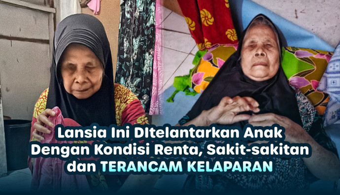 Nenek bilang anaknya pergi entah kemana menelantarkan nenek sendirian setelah rumahnya dijual. Untung saja ada tetangganya yang mau bantu nenek.