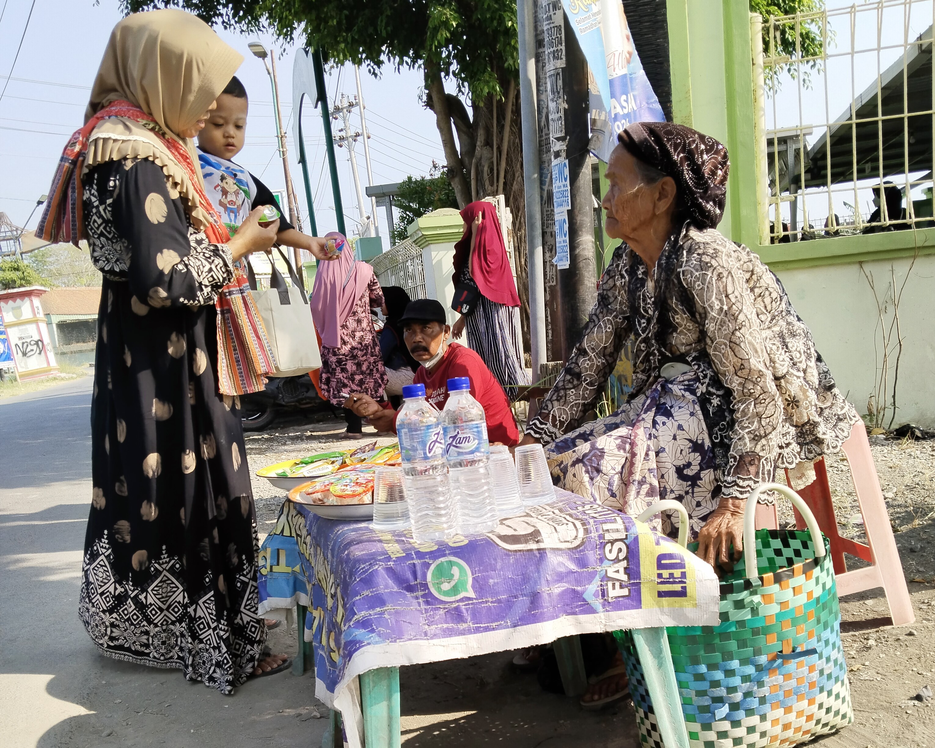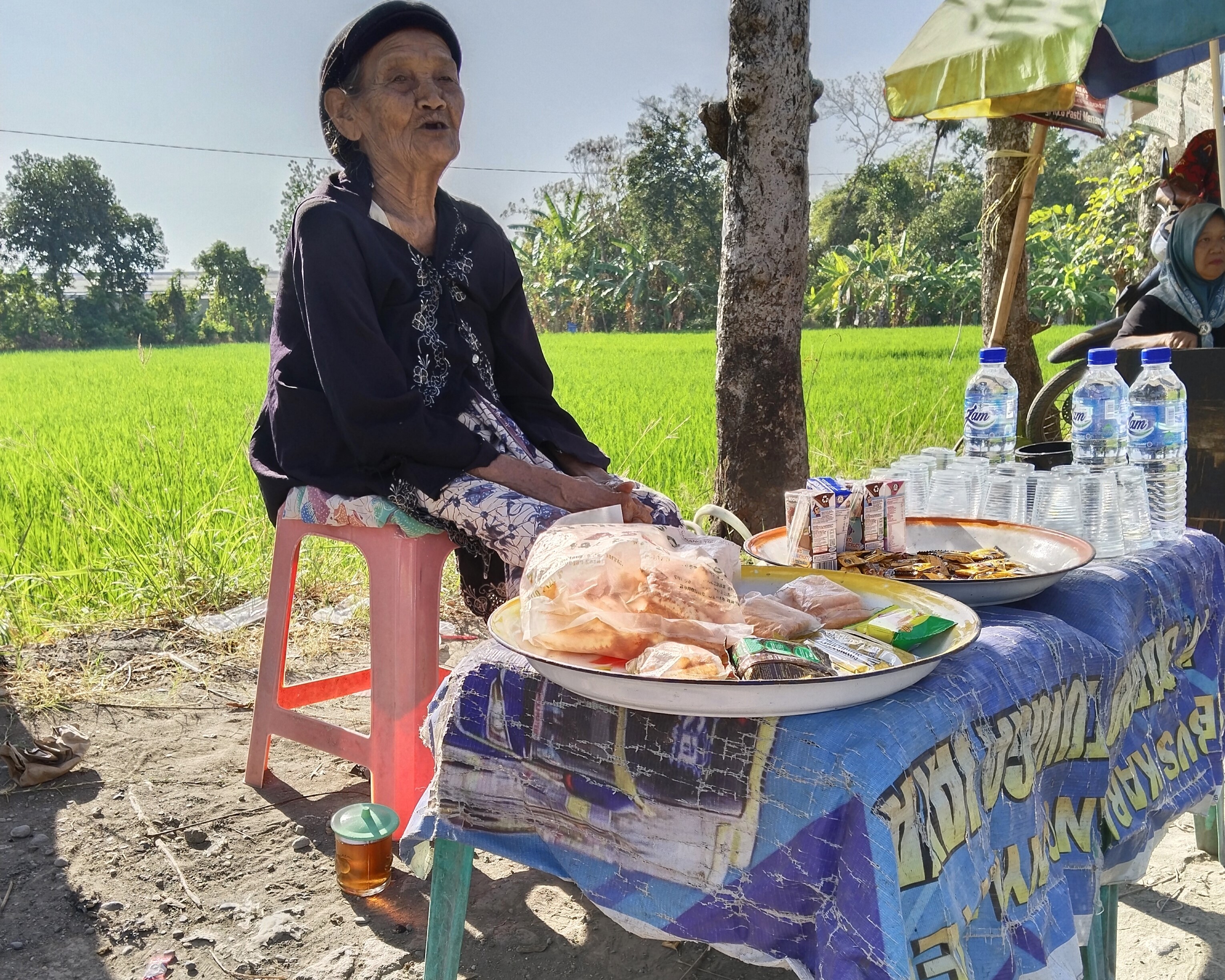 Nenek biasanya berjualan di depan puskesmas.