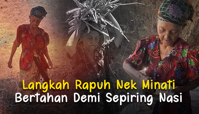 Nek Minati, lansia 67 tahun ini dengan tubuh yang mulai rapuh dan wajah yang dipenuhi keriput, Nek Misnati masih harus berjalan menyusuri pegunungan setiap hari untuk mencari kayu bakar satu-satunya sumber penghidupan yang tersisa baginya.
