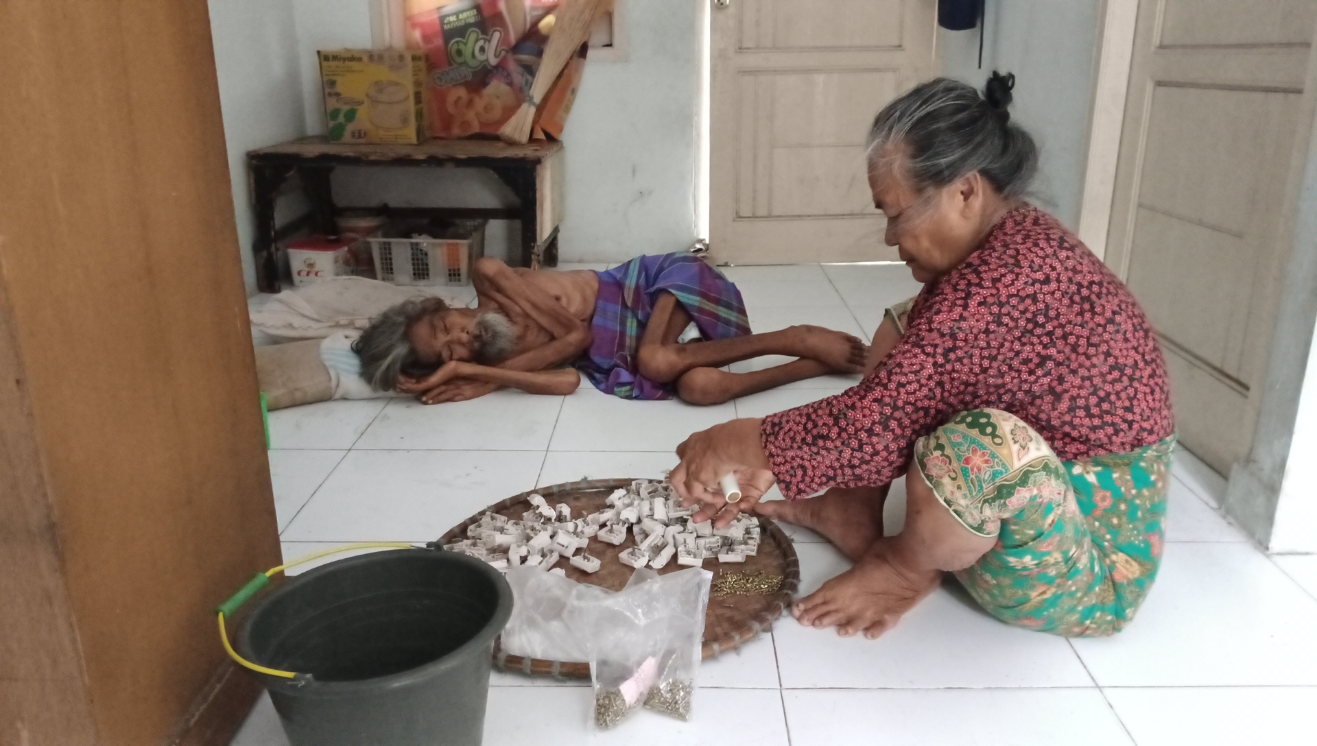 Perkenalkan namanya Nenek Roni (65) harus banting tulang tuk hidupi suaminya yang sakit lumpuh.