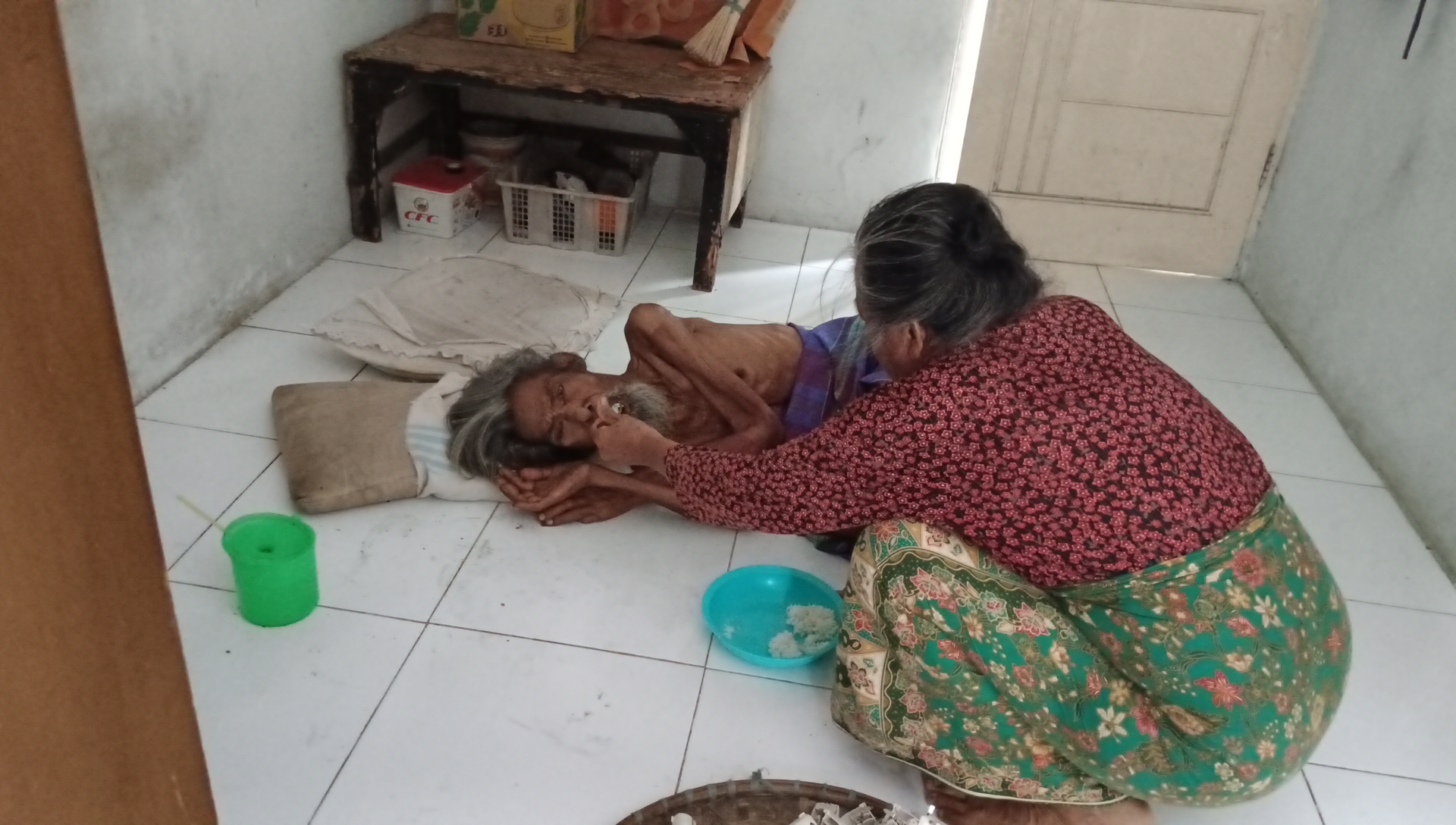 Kakek Asin (74) mengalami kelumpuhan satu tahun terakhir dan terpaksa terhenti pengobatannya karena faktor ekonomi.