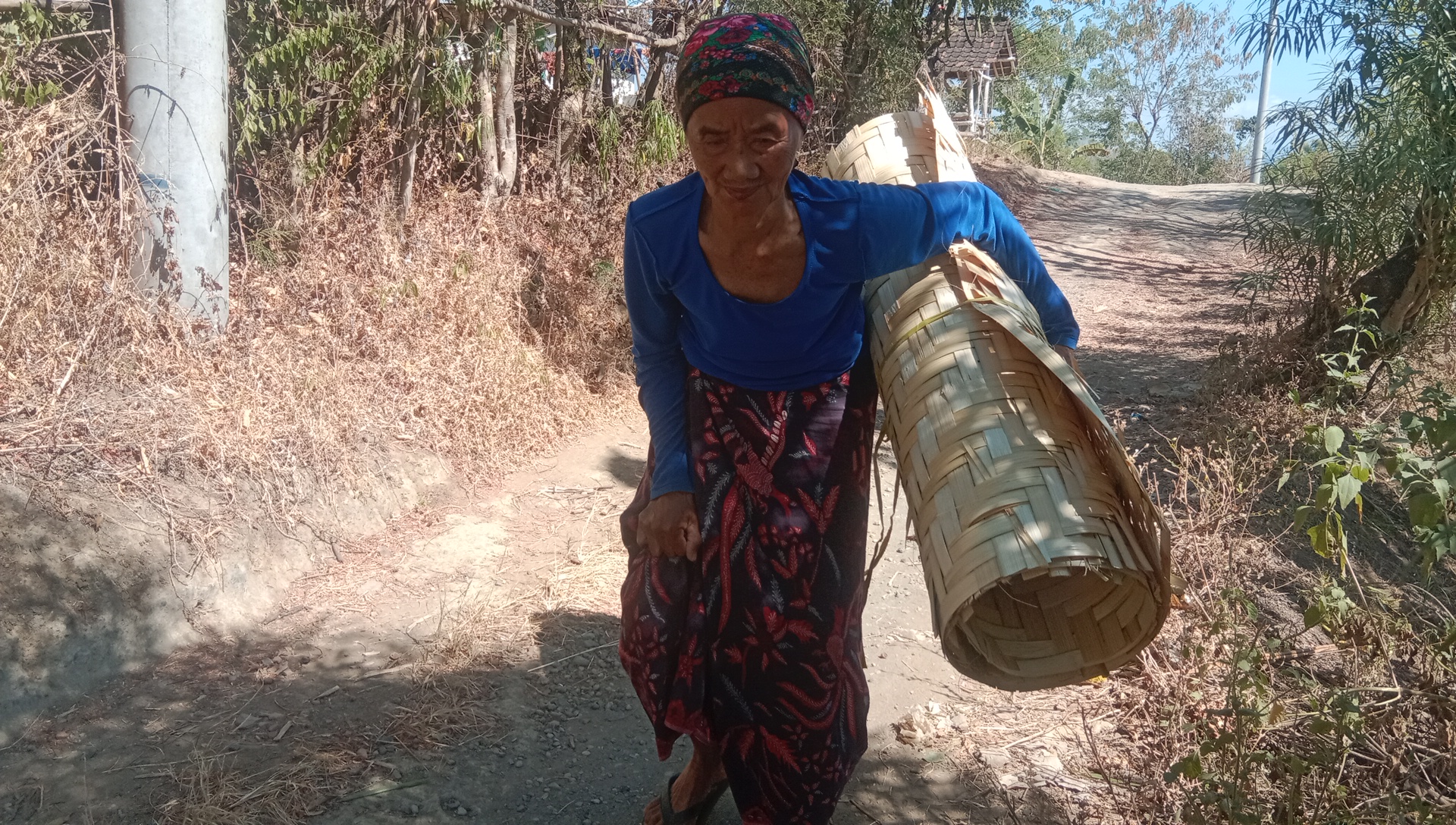 Dengan badan yang sudah membungkuk ia setiap hari berjalan sekitar 5 km untuk mengantarkan anyaman bambu yang dibuatnya. Anyaman yang dijualnya tak laku setiap hari nenek hanya membuat jika ada orang yang memesan anyaman saja.