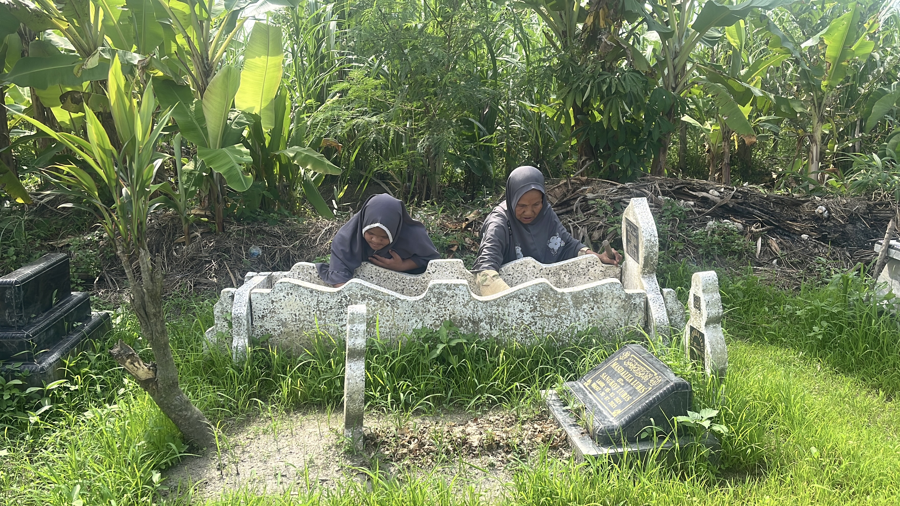 Tepat 2 tahun yang lalu, ayahnya meninggal. Kini ia tinggal bersama ibu yang sudah renta, Ibu Jainah (60) yang bekerja sebagai penggali kubur dengan upah tak tentu.