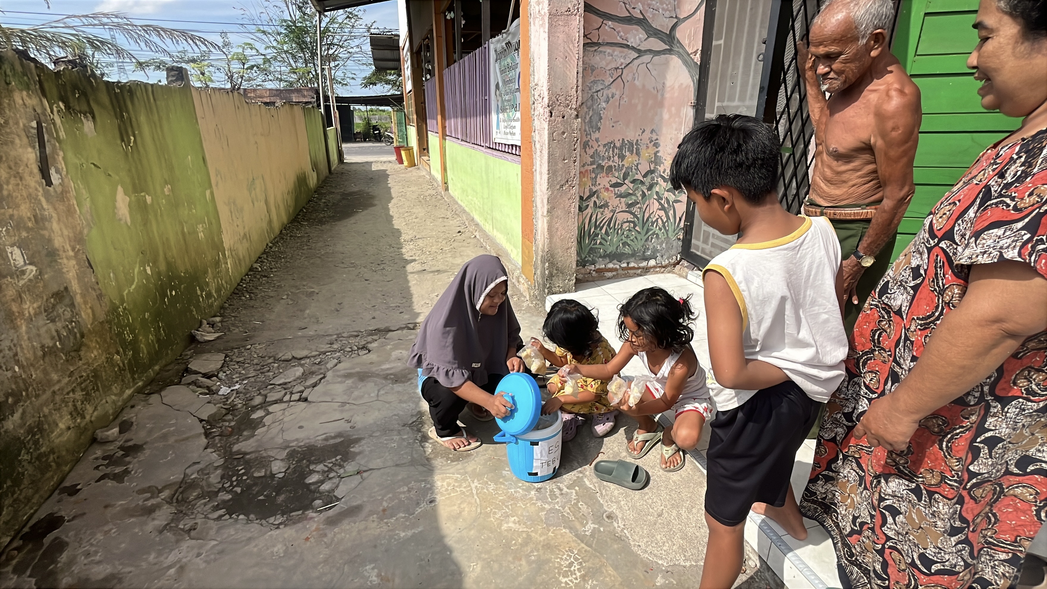 “Biasanya kami makan 1 kali sehari aja bang, pake tempe. Mau beli ikan gaada uang,” tuturnya sedih.
