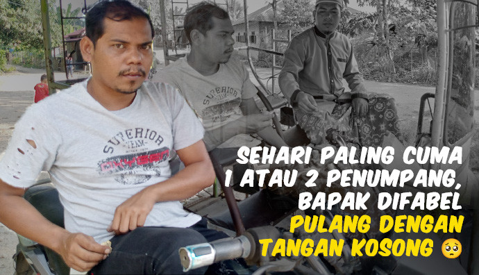 Namanya Pak Adi (35). Di tengah keterbatasannya, ia masih bejuang tuk hidupi keluarganya.