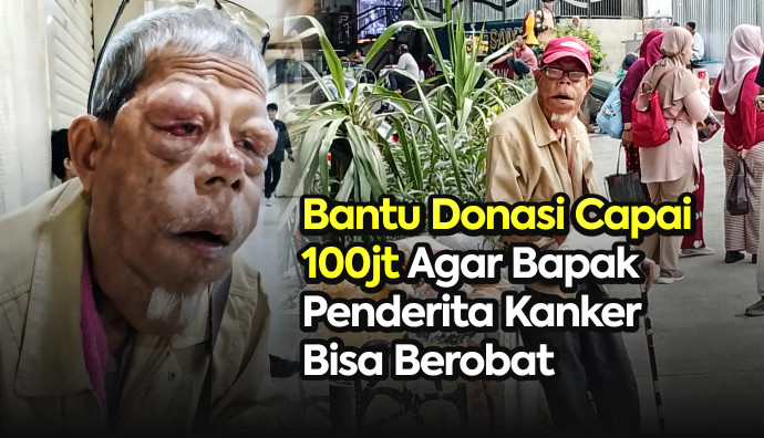 Pak Aprinal (66) jualan kerupuk dengan kondisi mata serta wajahnya yang bengkak akibat Kanker Ganas yang diderita namun tak diobati.