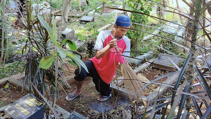 Ia tetap bertahan seorang diri sebagai penjaga dan pembersih makam selama 30 tahun.