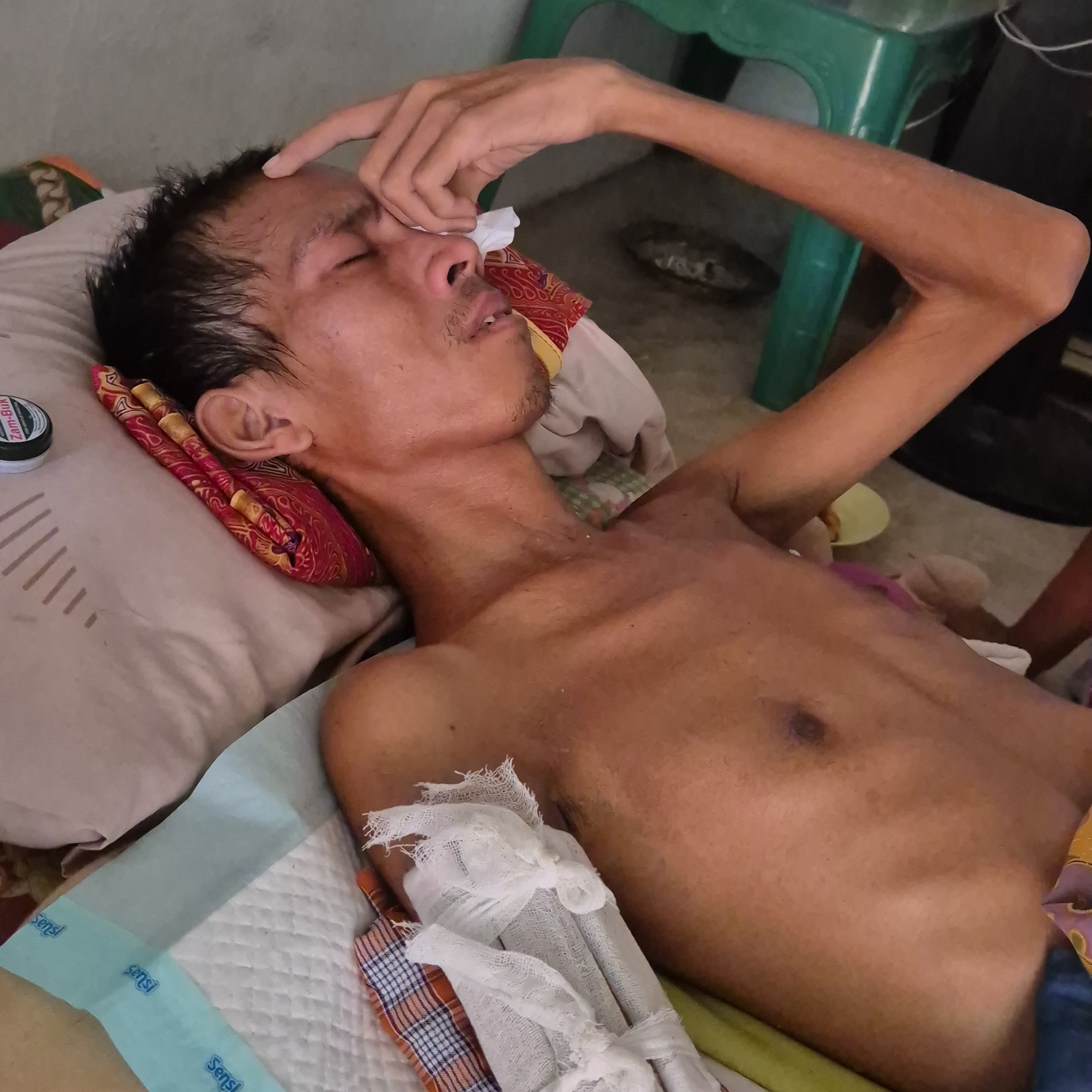 “Saya ngerasa bersalah bu lihat anak dan istri saya seperti itu. Tapi, saya tidak bisa apa-apa melihat kondisi saya. Saya hanya bisa menangis,” tuturnya pilu.