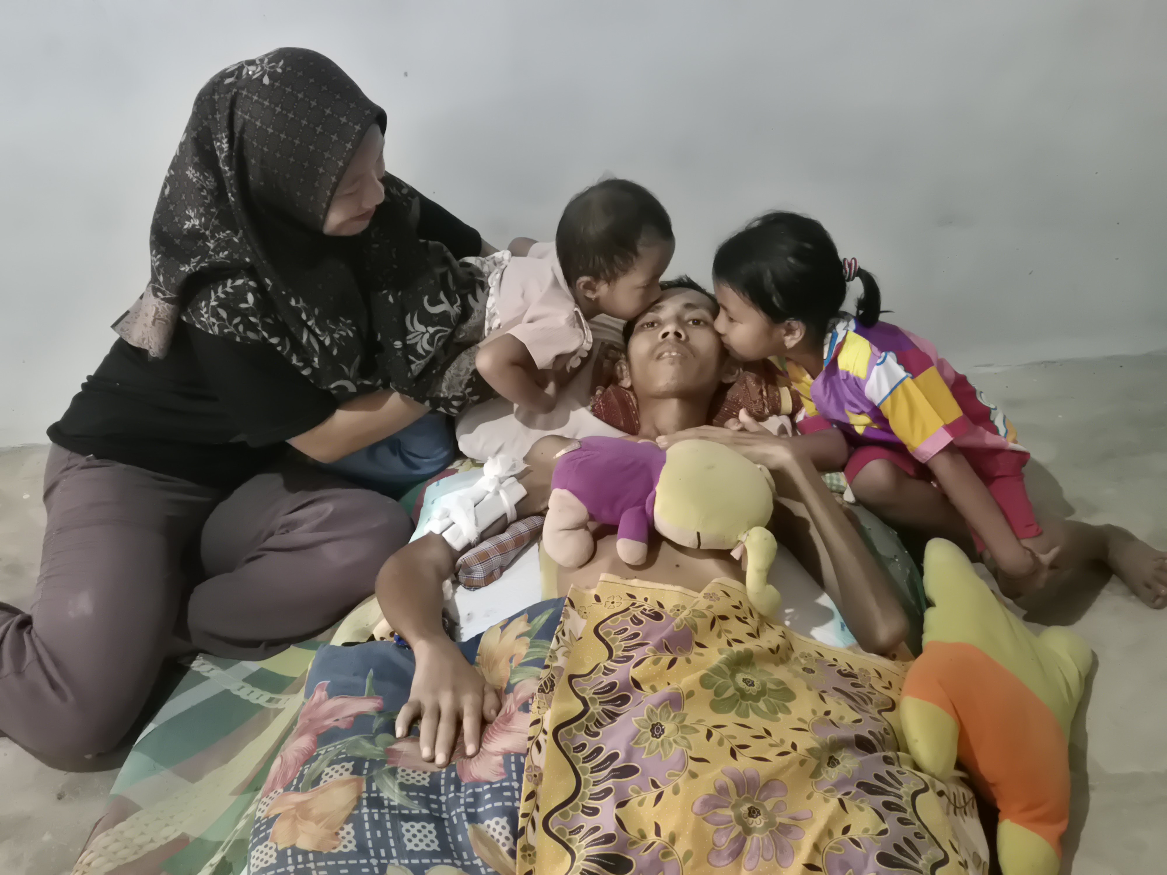 Anak keduanya, Ani (3) menceritakan bahwa ia ingin melihat sang ayah sembuh.