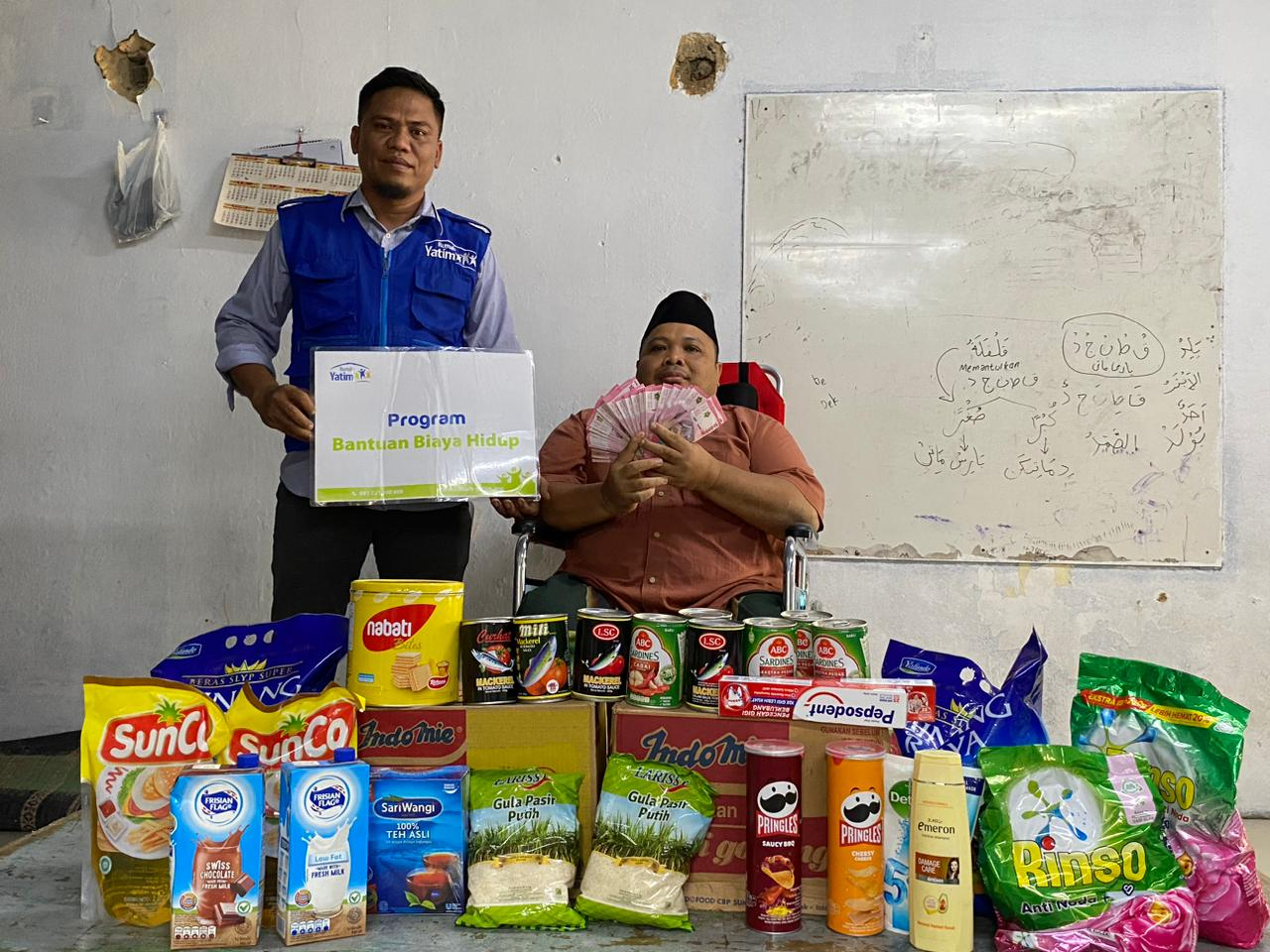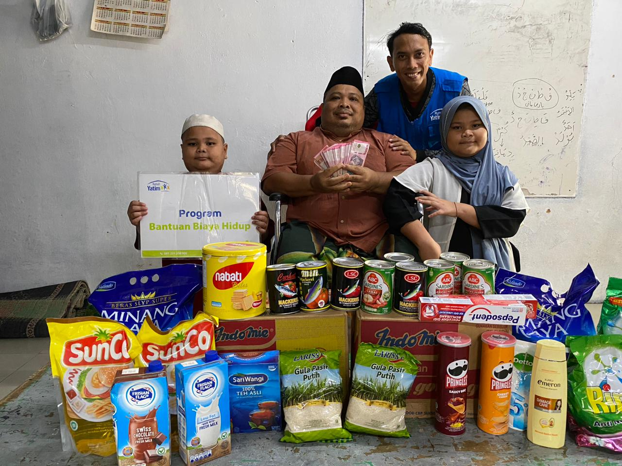 Kali ini kami memberikan bantun berupa uang tunai sebesar Rp.20.000.000,- yang akan digunakan untuk membeli beras, minyak, terigu, susu, sarden, gula, sabun sampo, kursi roda, sisa nya akan Pak Misnan gunakan untuk biaya sekolah anaknya dan membuat warung kak,