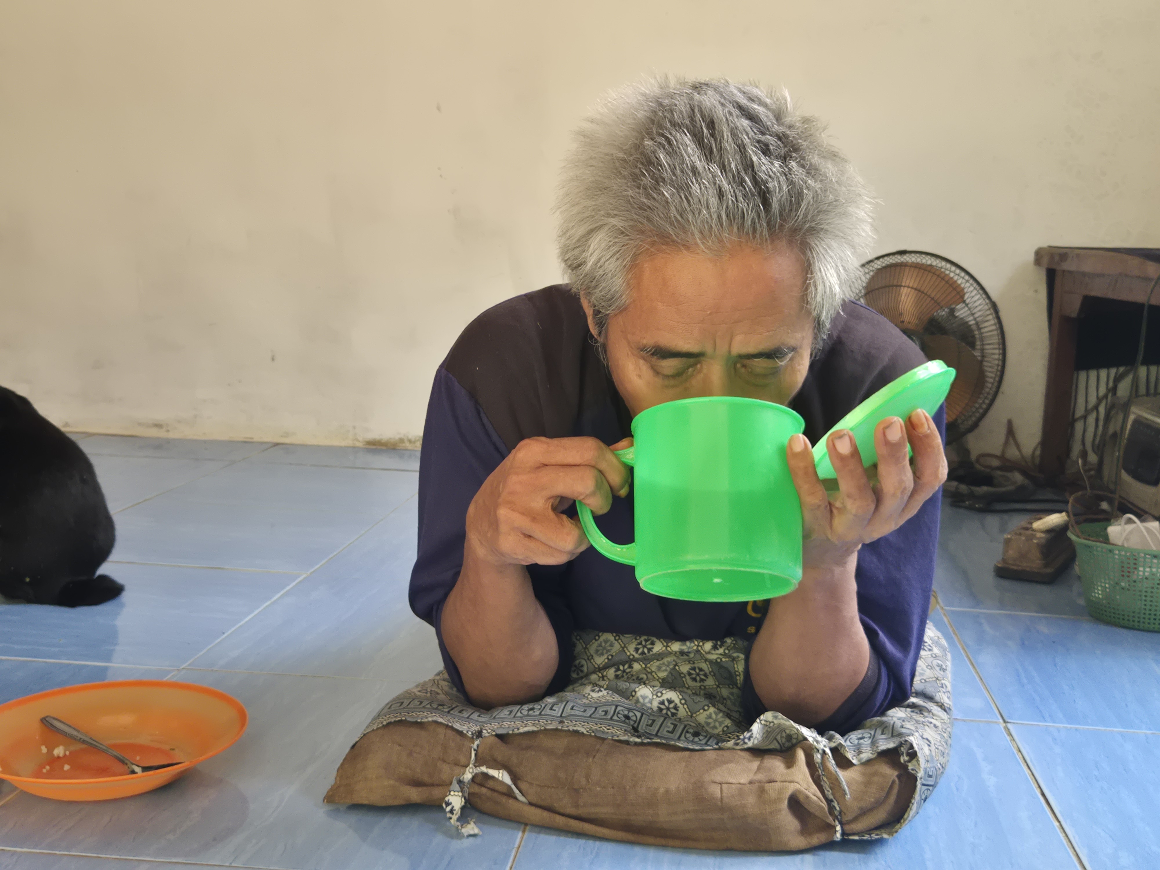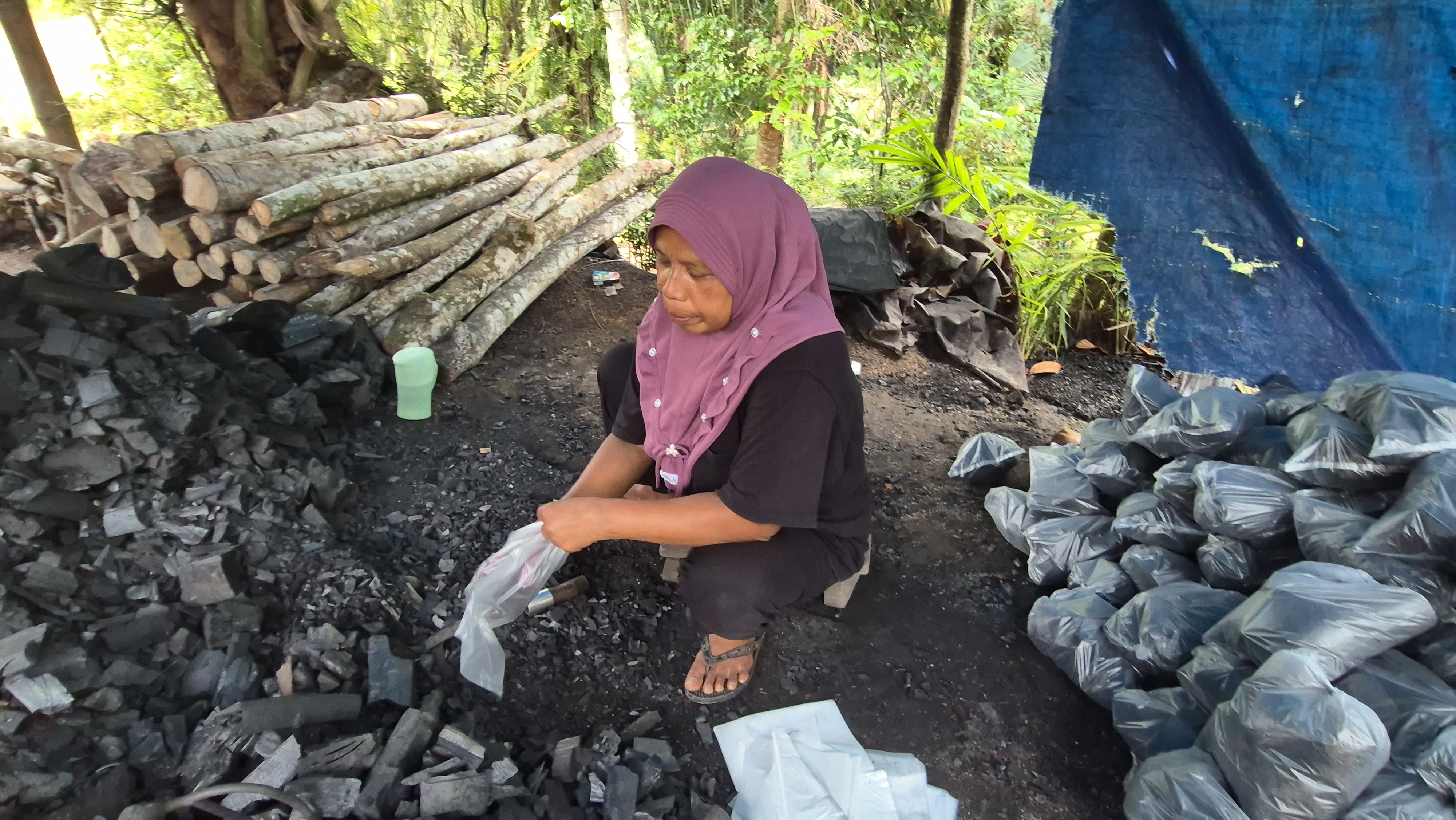 Meski terbatas, Pak Ponirin tetap berusaha membantu istrinya, Ibu Ratna (52), membersihkan lidi meski hanya sebentar karena tubuhnya sering melemah. Sementara itu, Ibu Ratna menjadi tulang punggung keluarga dengan bekerja sebagai buruh packing arang dengan upah Rp50.000 per hari (hanya 2 kali seminggu), ditambah menjual lidi sekitar 3 kg per minggu. Penghasilan itu hanya cukup untuk makan sekali sehari.