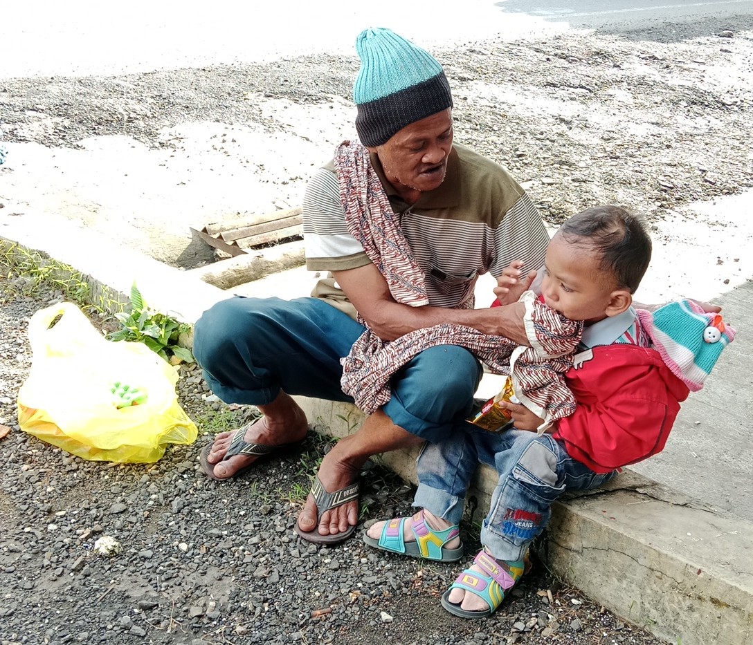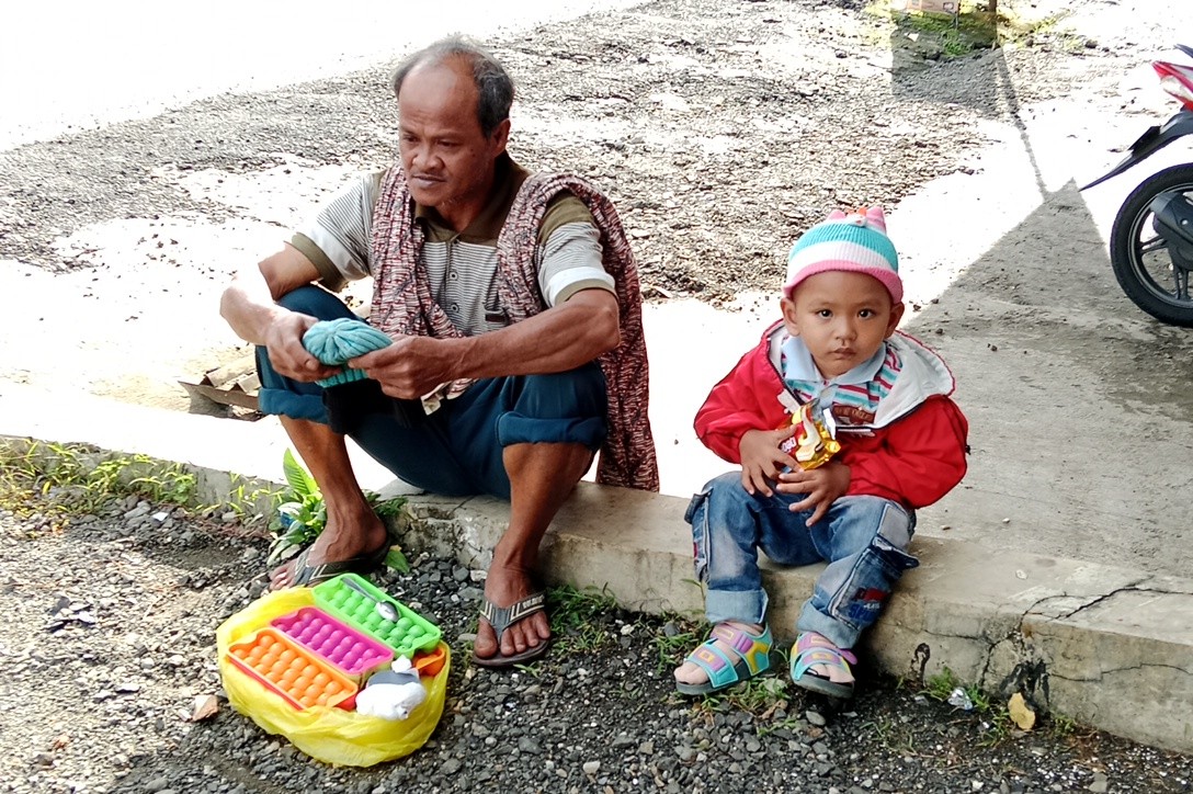 Sudah satu tahun terakhir Pak Sabiun berjualan keliling sendirian bersama sang anak.