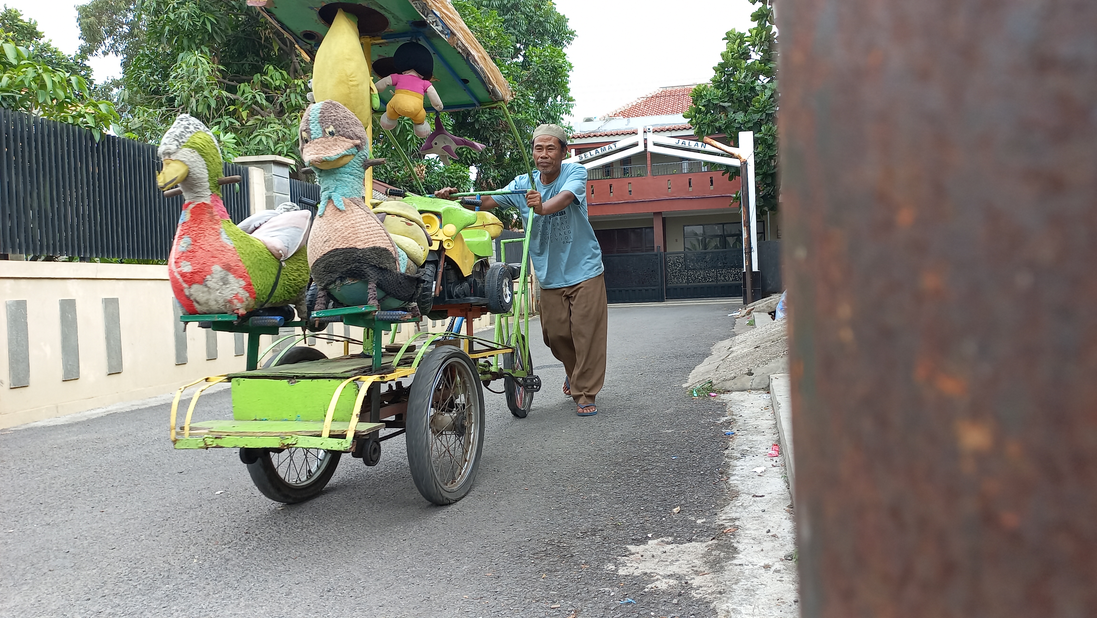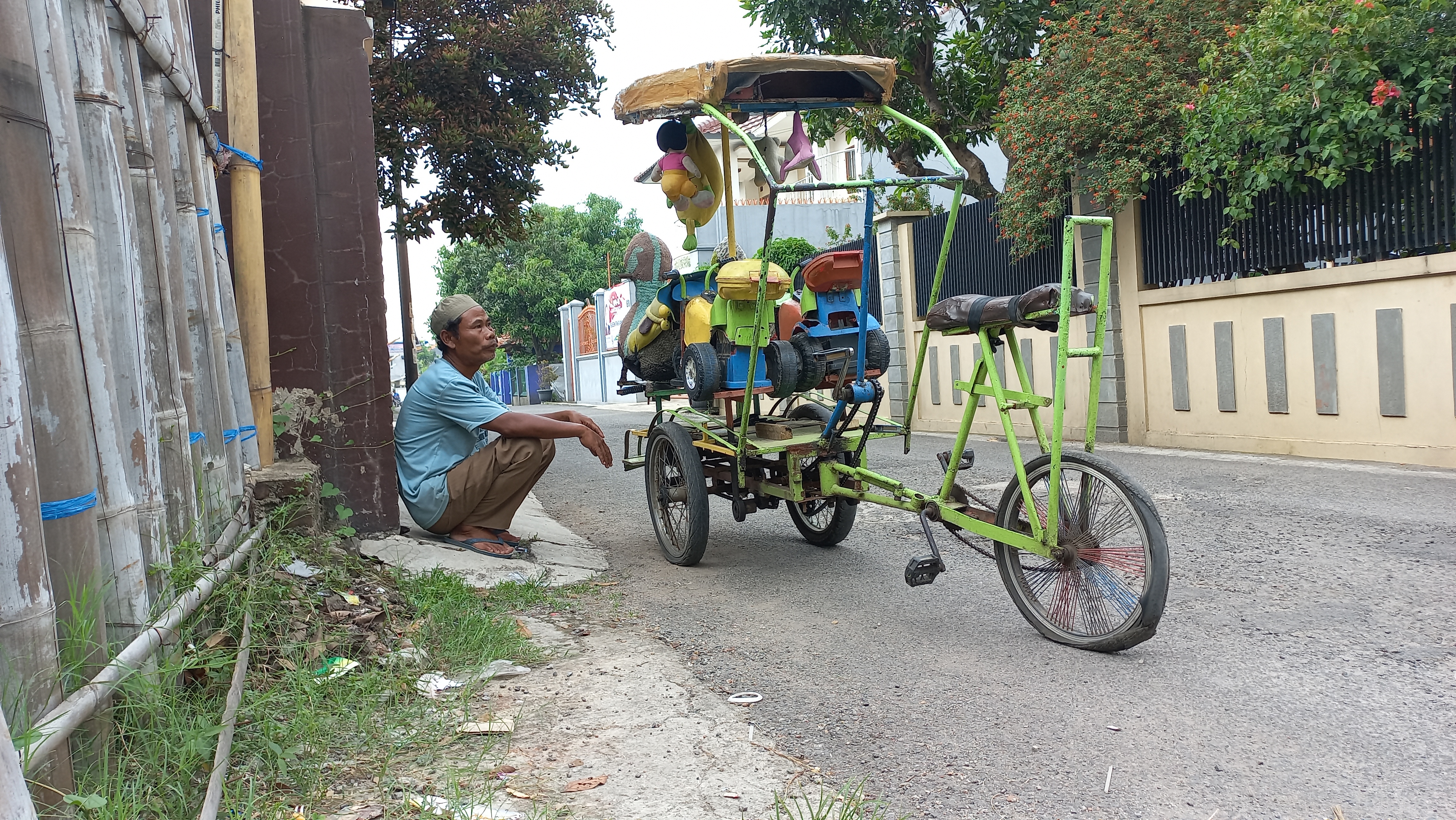 Pak Tatang setiap hari ia mencari rezeki untuk keluarganya dengan menjadi tukang odong-odong. Semua itu dilakukan untuk menghidupi istri dan anak-anaknya yang masih kecil.