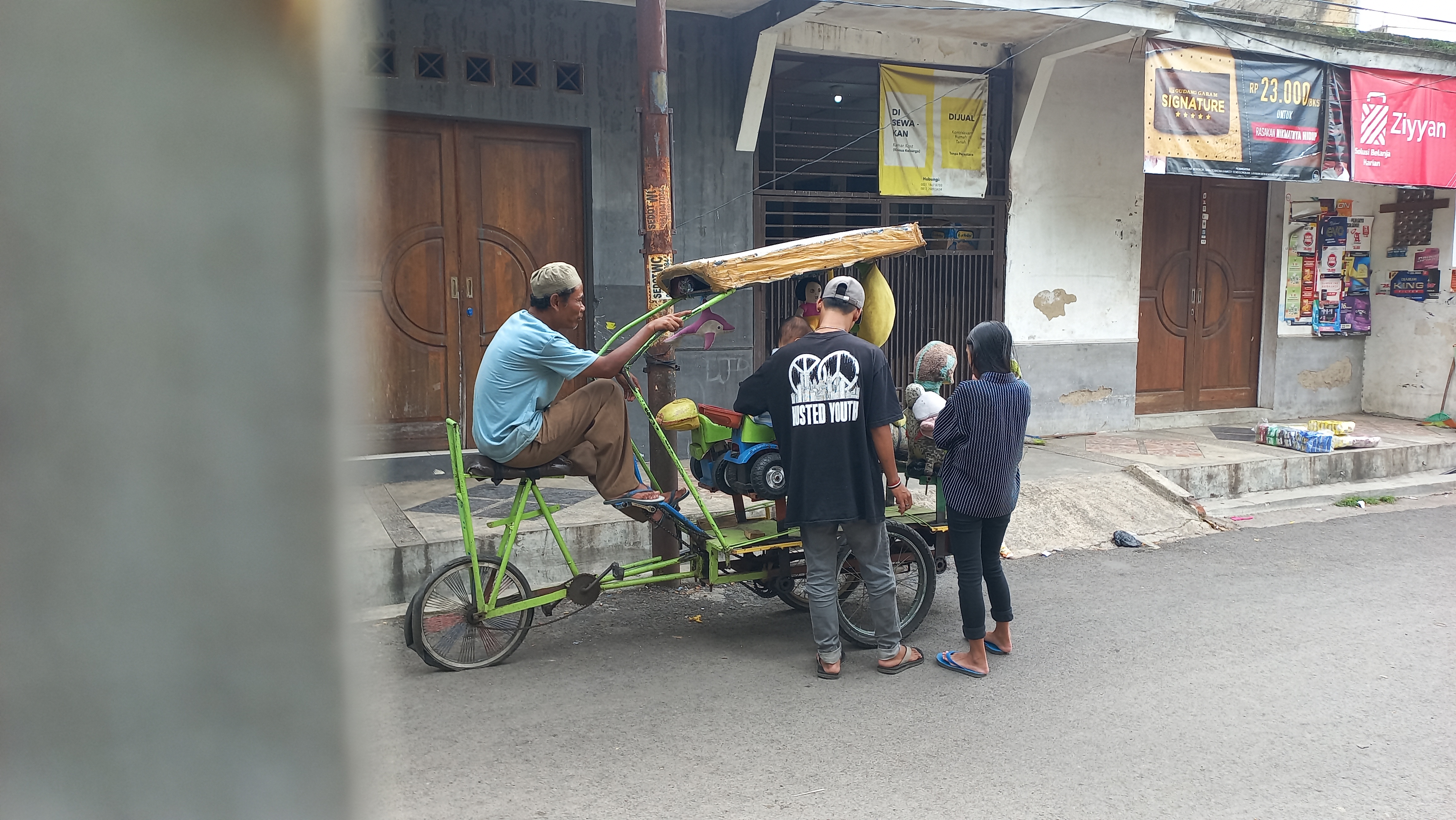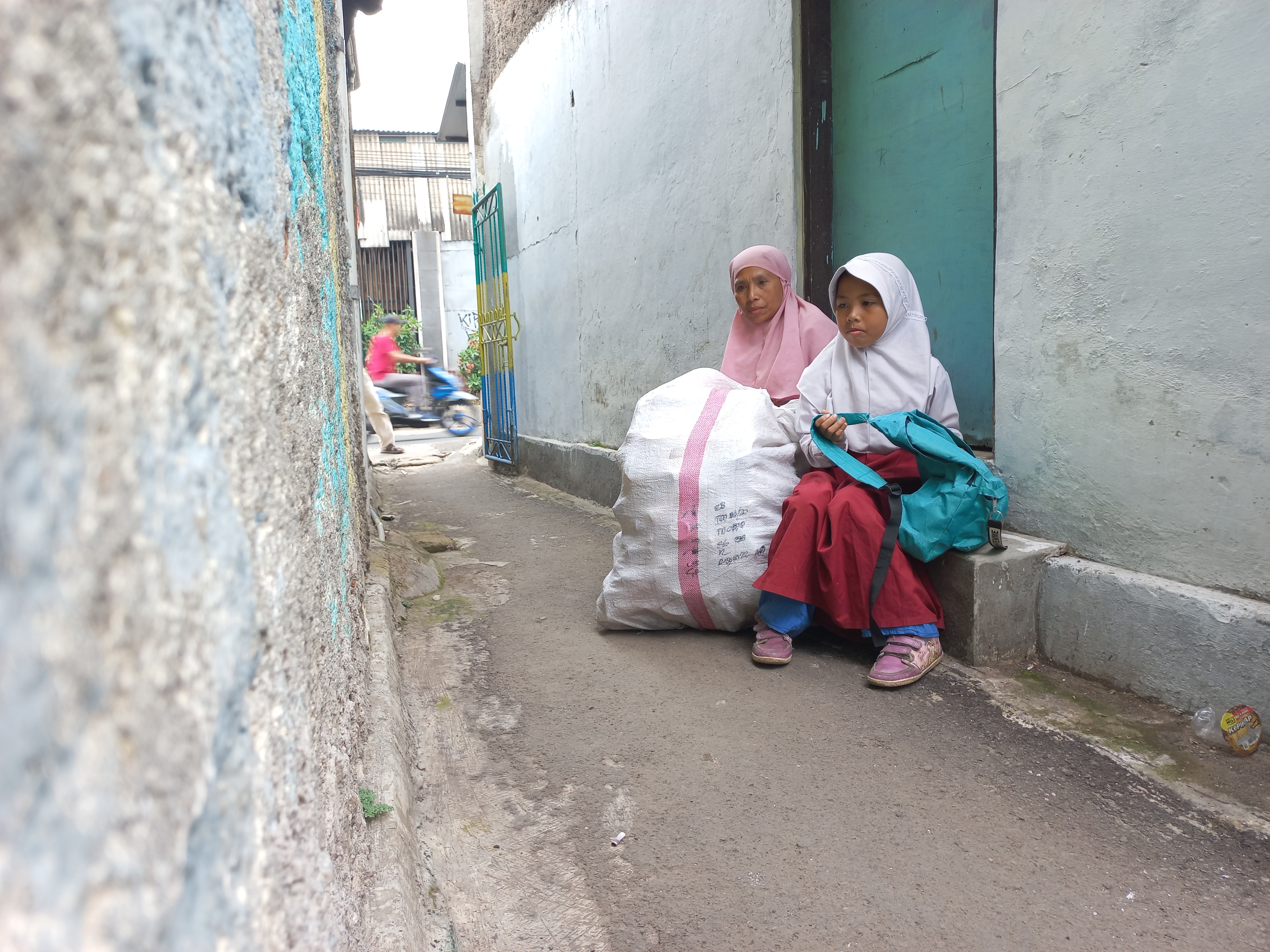 Pak Tatang cerita kalau odong-odong nya sering sepi karena sekarang anak-anak jarang naik odong-odong. Ibu Eni (49) dan anak bungsunya membantu suaminya mencari nafkah dengan keliling mencari barang rongsokan. Penghasilan dalam sehari hanya 20 ribu itu pun harus di kumpulkan beberapa hari.