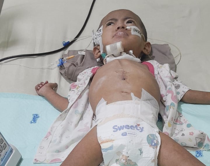 Arumi menderita sakit sejak usia 3 bulan dan baru bisa menjalani pengobatan secara rutin ke Rumah Sakit mulai Desember 2024 karena tak ada biaya. Ia menderita Hidrosefalus dan Cerebral Palsy💔