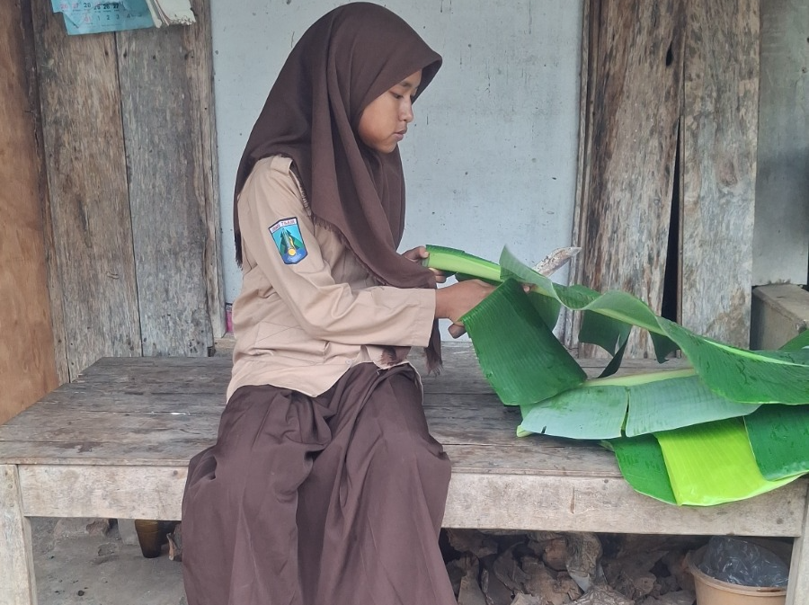 Hasil upahnya digunakan untuk makan dan penuh harap bisa menabung untuk beli perlengkapan sekolah baru karena seragam, tas dan sepatu sudah lusuh dan robek.